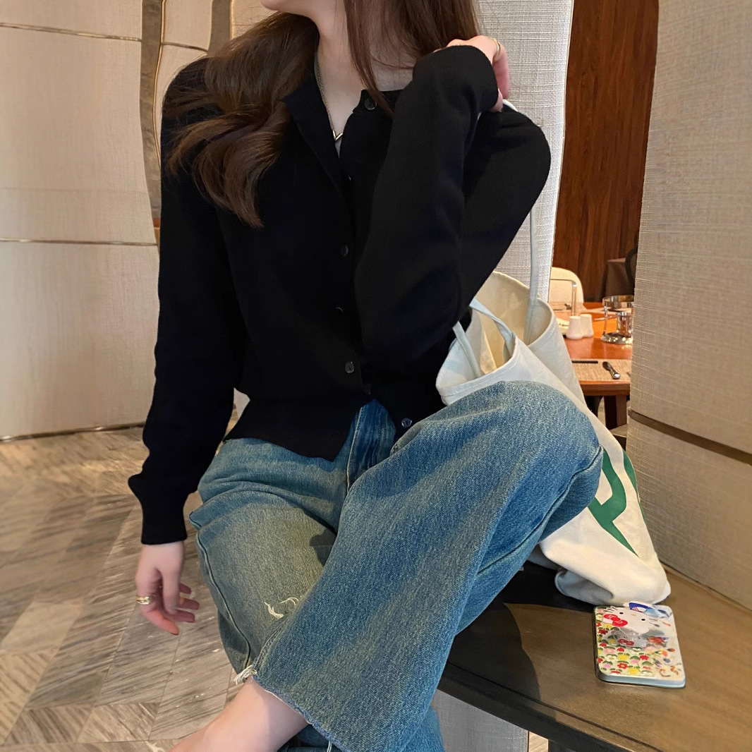Вязаный кардиган, верхняя одежда, женский топ, новинка весны и осени 2022, черный верхний свитер с длинными рукавами, осенне-зимний популярный стиль
