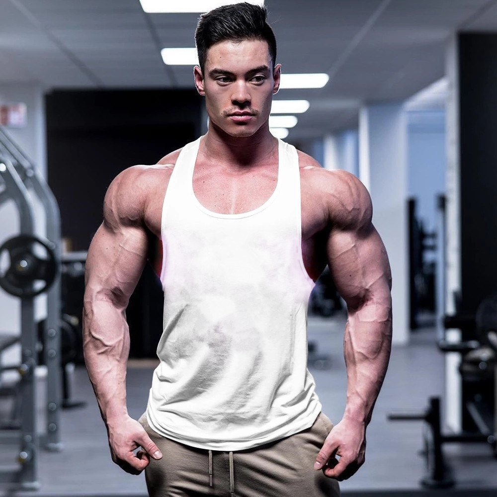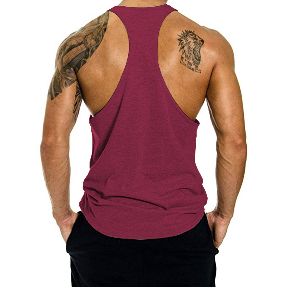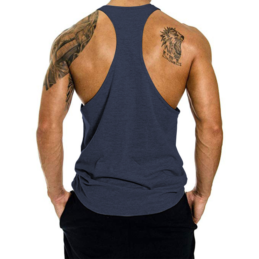 Трансграничный мужской жилет для фитнеса, спортивный летний хлопковый Европейский код, однотонный, широкий плечевой I-образный жилет, поколение волос