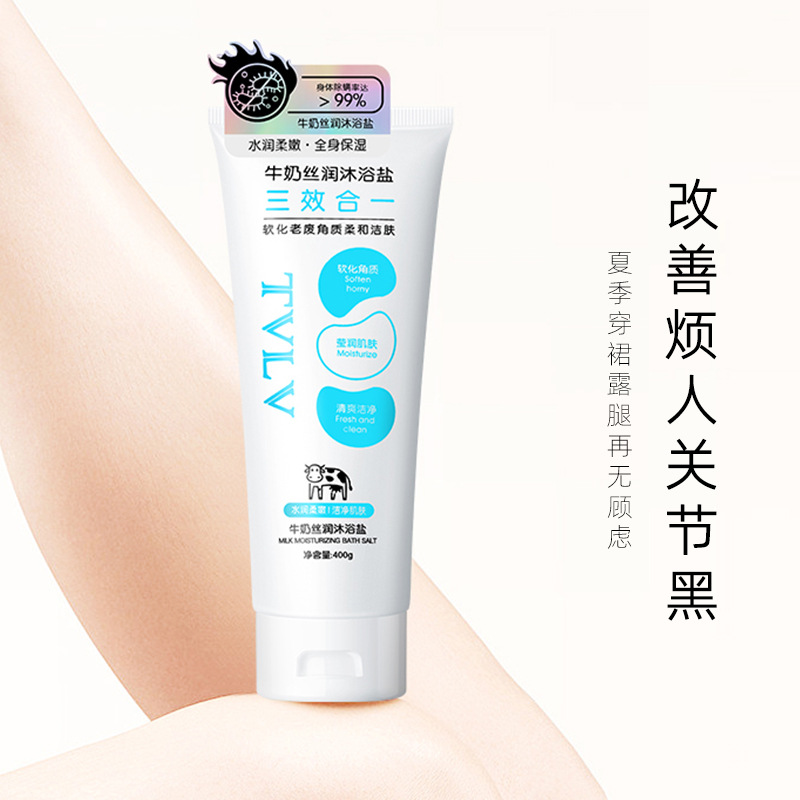 Скраб для тела TVLV Milk Silk: увлажняющая, отшелушивающая, глубоко очищающая, осветляющая кожу с эффектом увлажнения и питания.