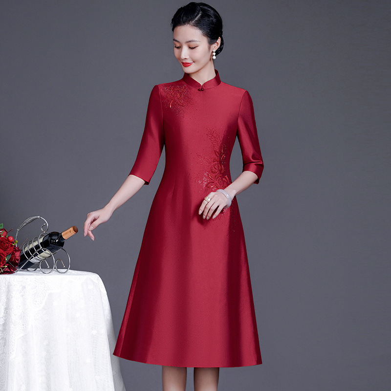 Привет свекровь Cheongsam Мама Свадебное платье Свадебное платье 2025 Новый свадебный костюм большой размер высокого качества темперамент осень