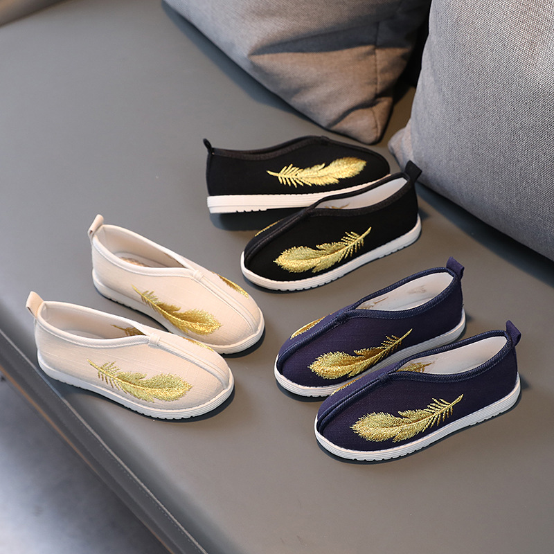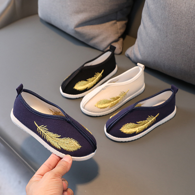 Древний костюм, юбка с лицом лошади, детская обувь, древний стиль, обувь династии Хань, новая детская тканевая обувь в стиле шинуазри, обувь ручной работы с вышивкой для мальчиков