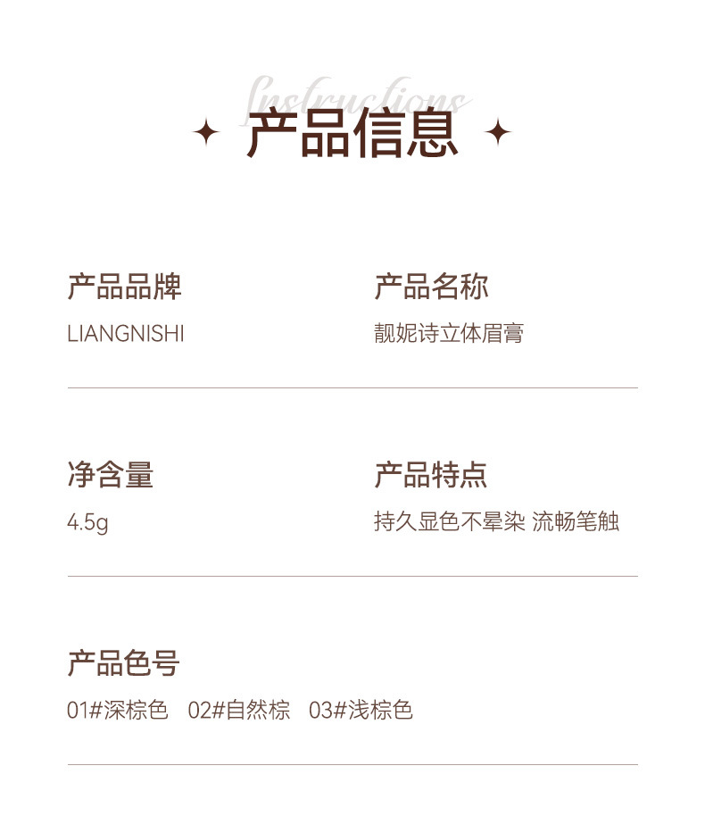 LIANGNISHI Lianni paesty стерео крем для бровей (01 # темно-коричневый)