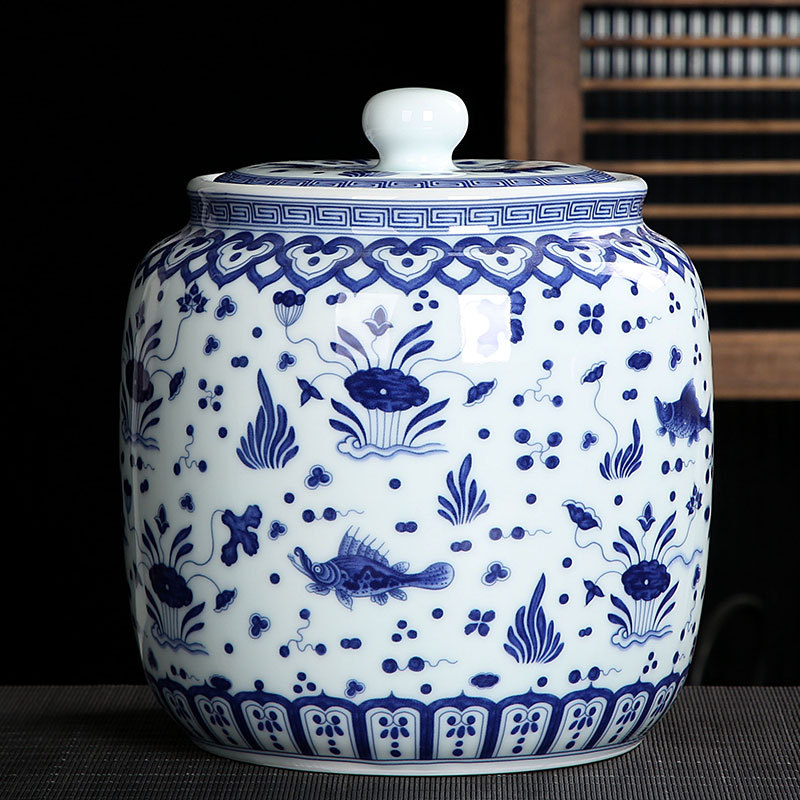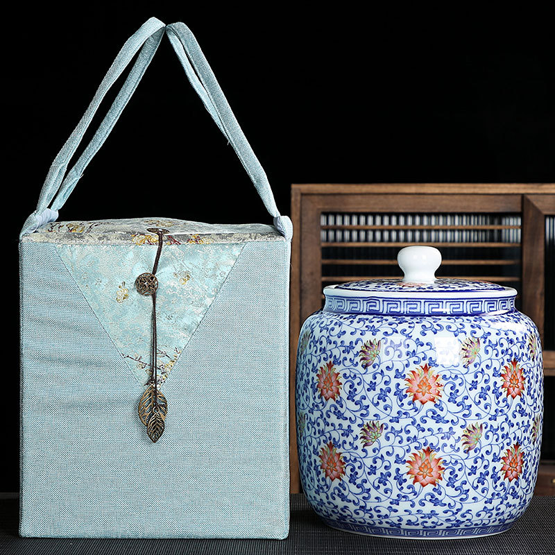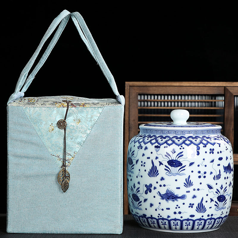 Сине-голубая эмаль цветная керамическая чайная банка 4 кг очень большой чайная банка