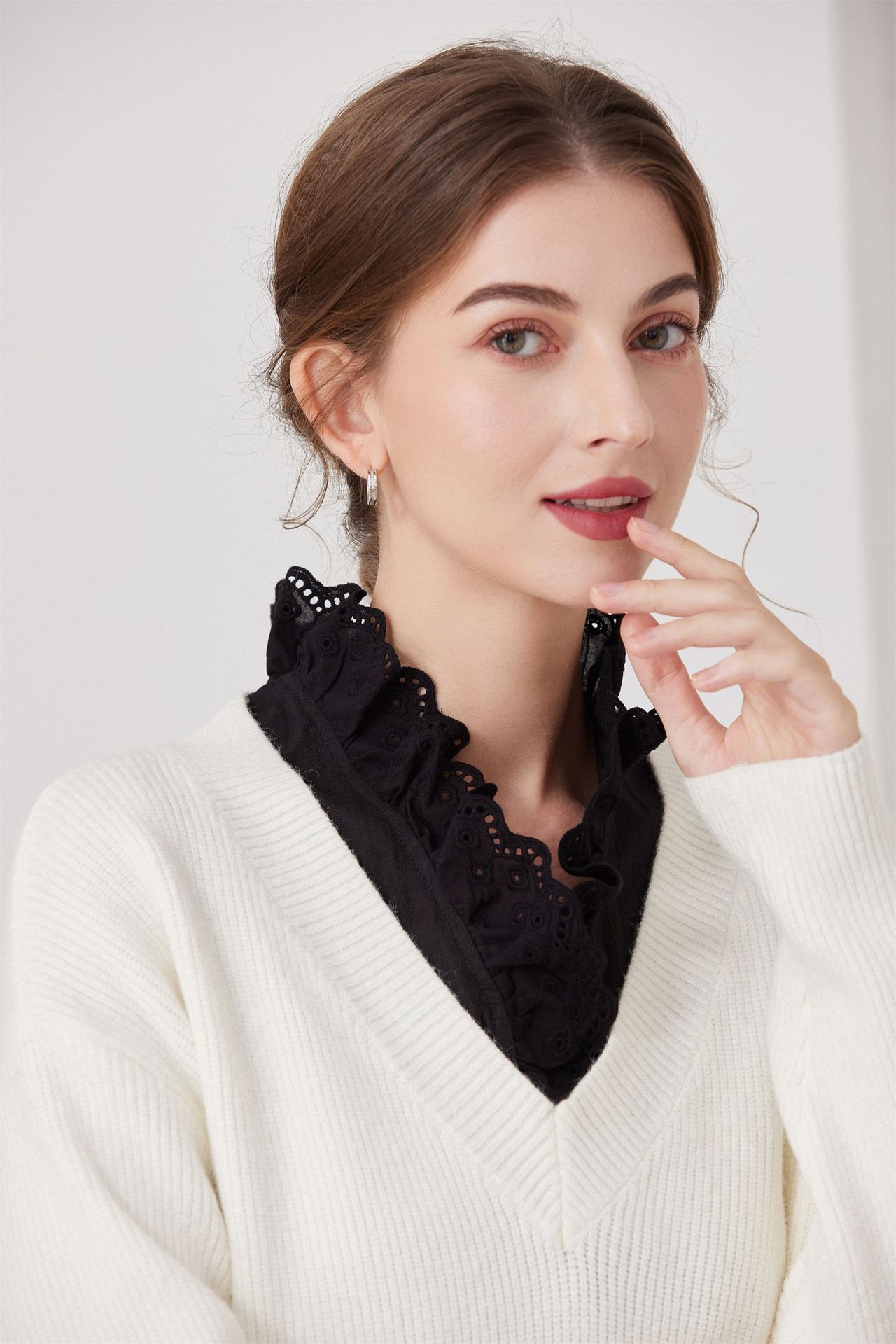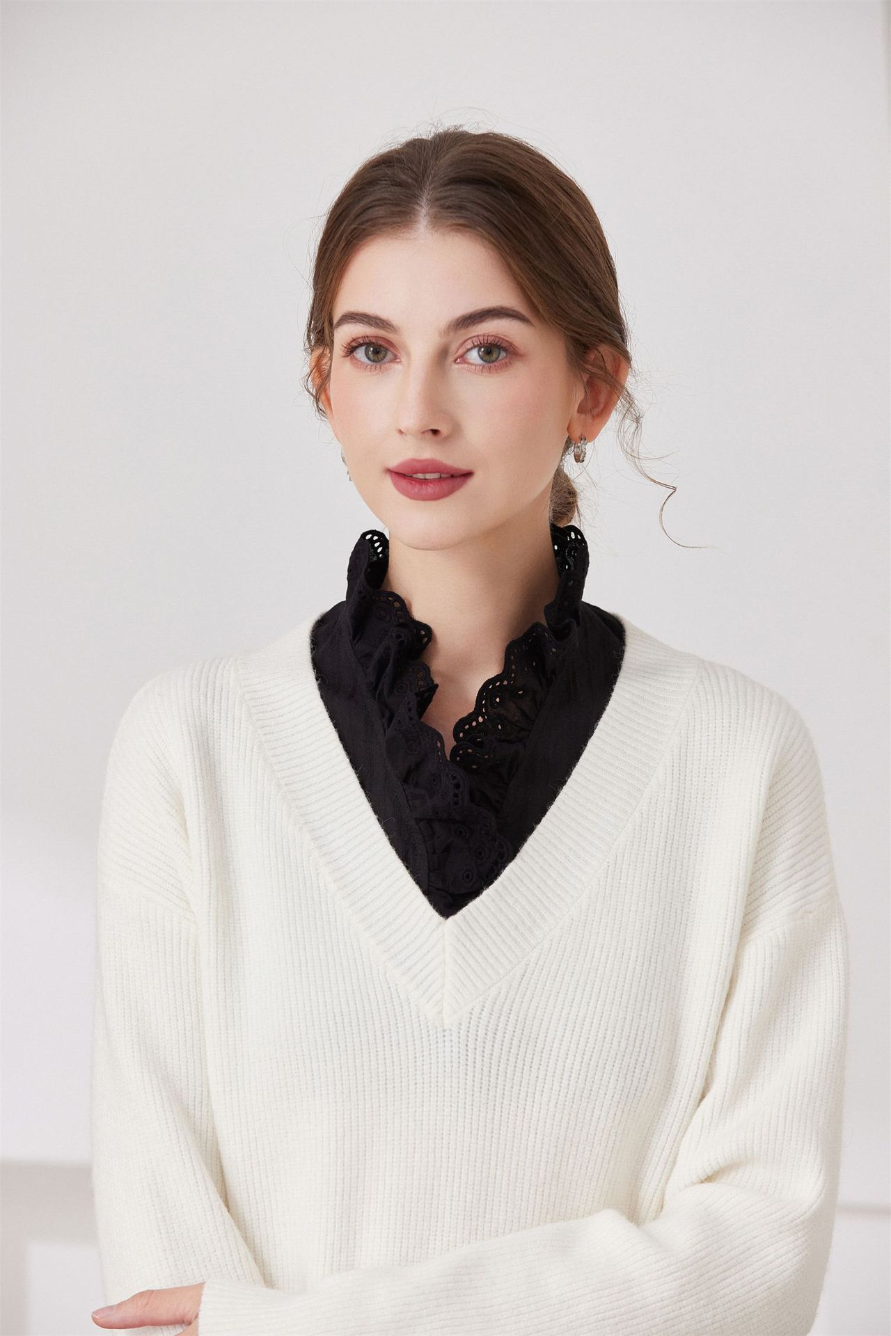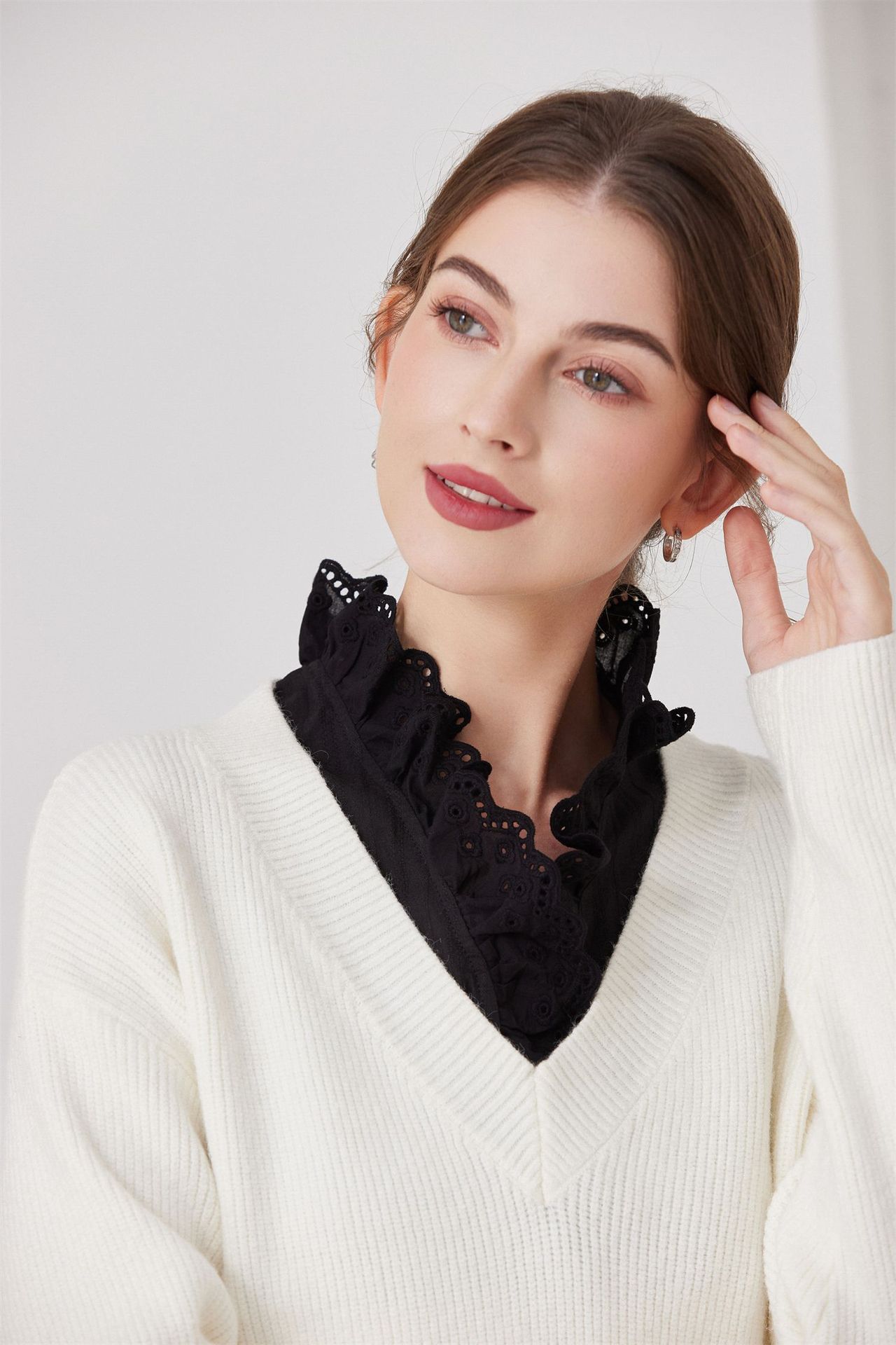 Женский осенне-зимний свитер-базовый слой с воротником-стойкой, универсальный воротник-стойка с оборками, воротник-стойка от производителя для международных рынков