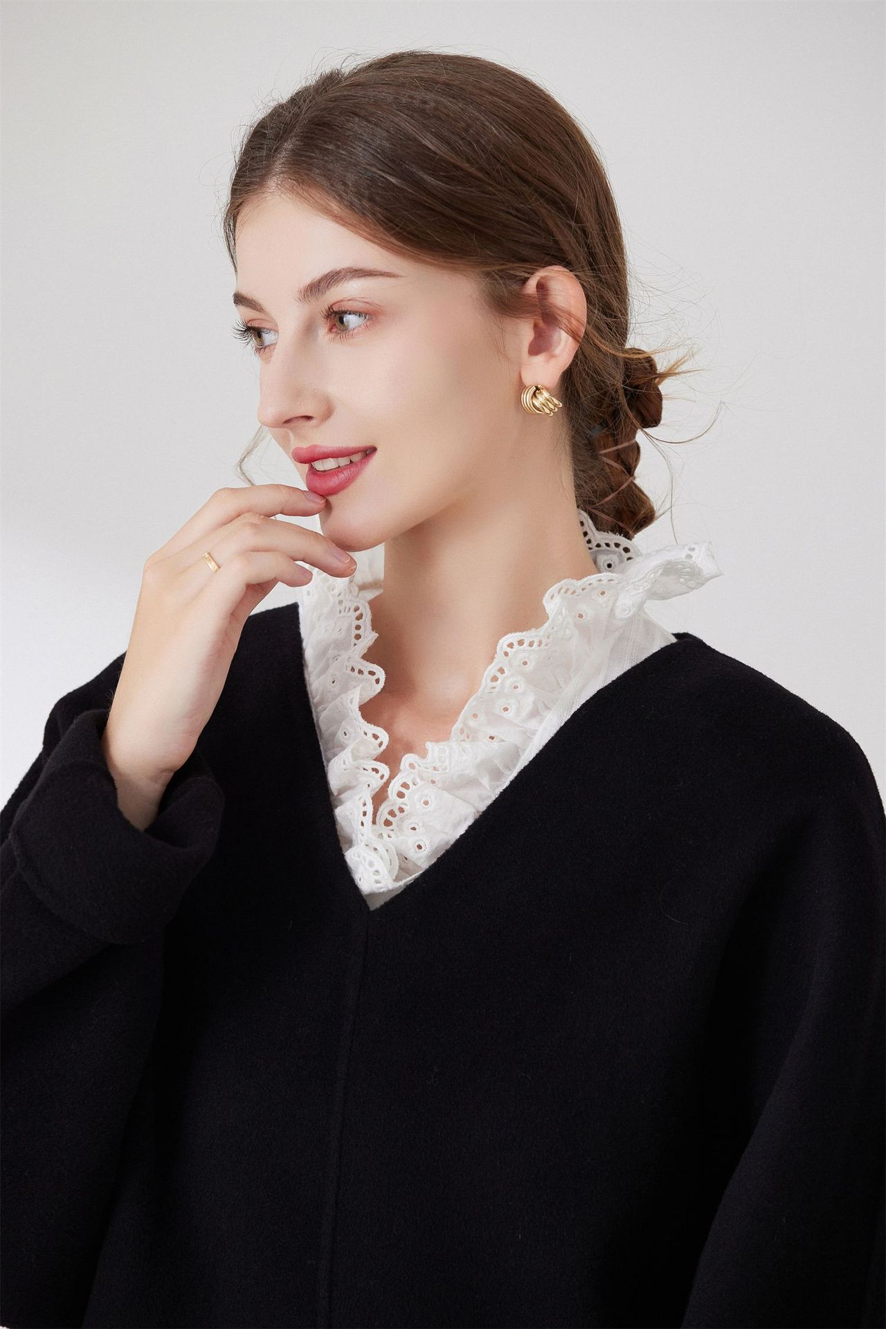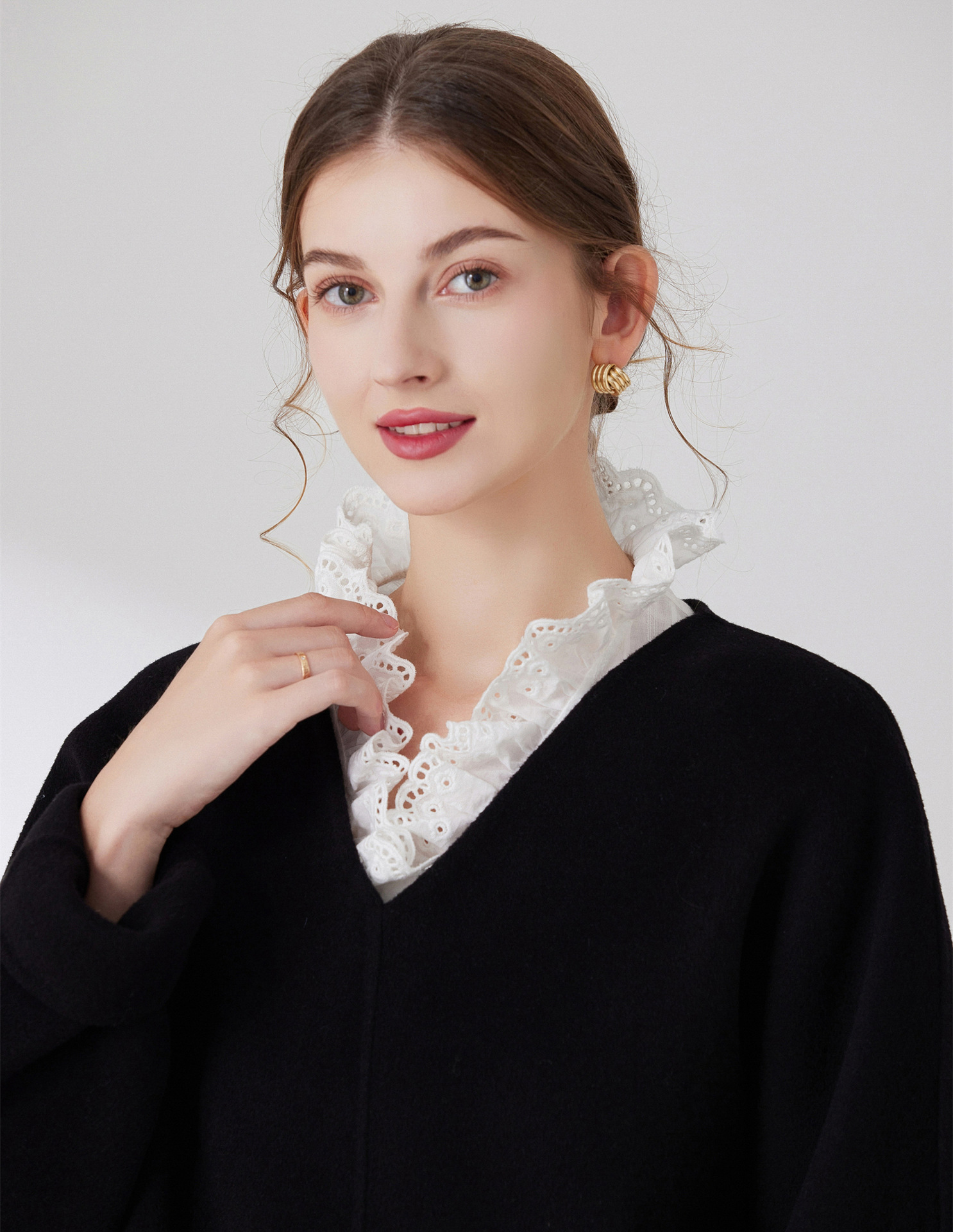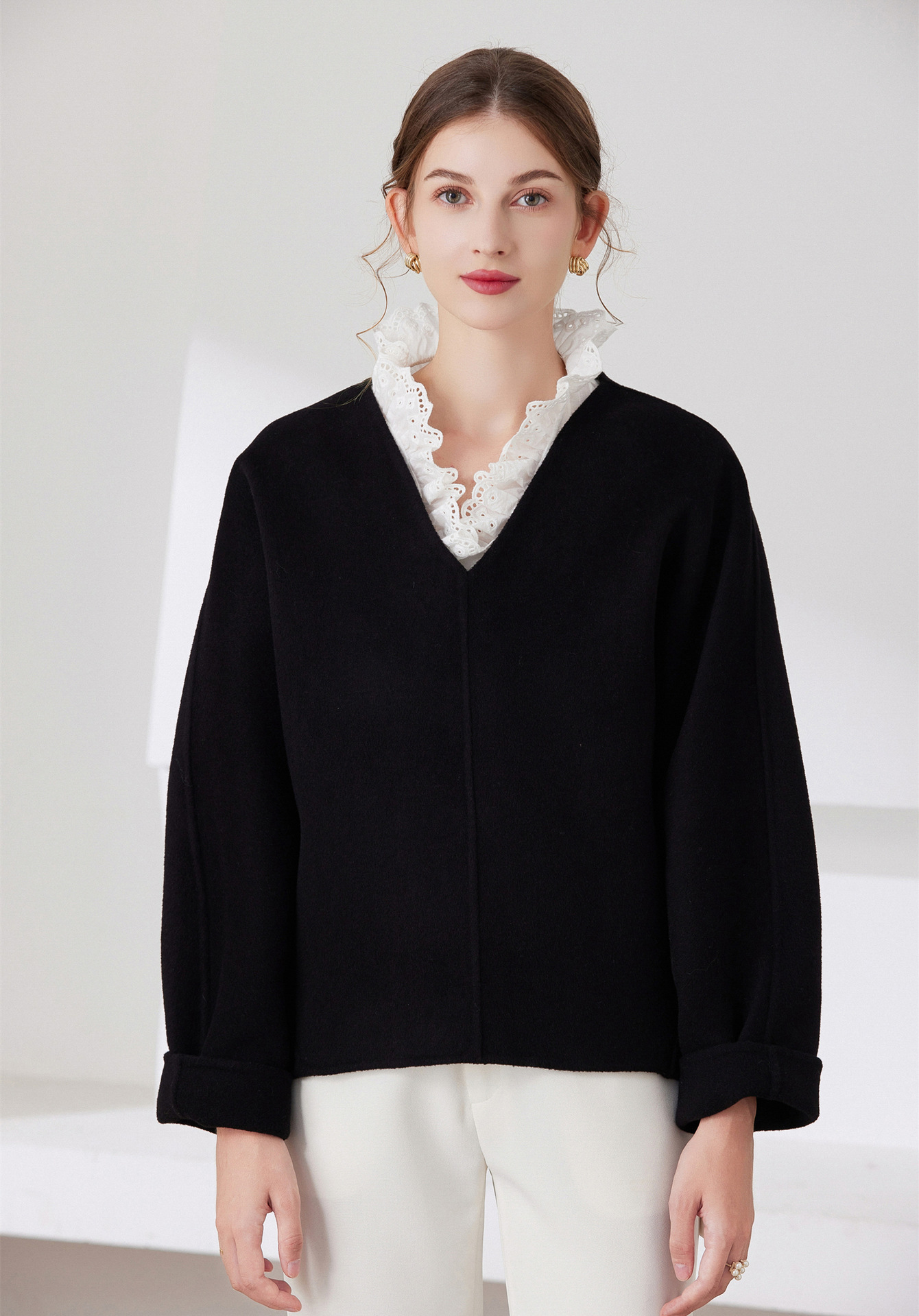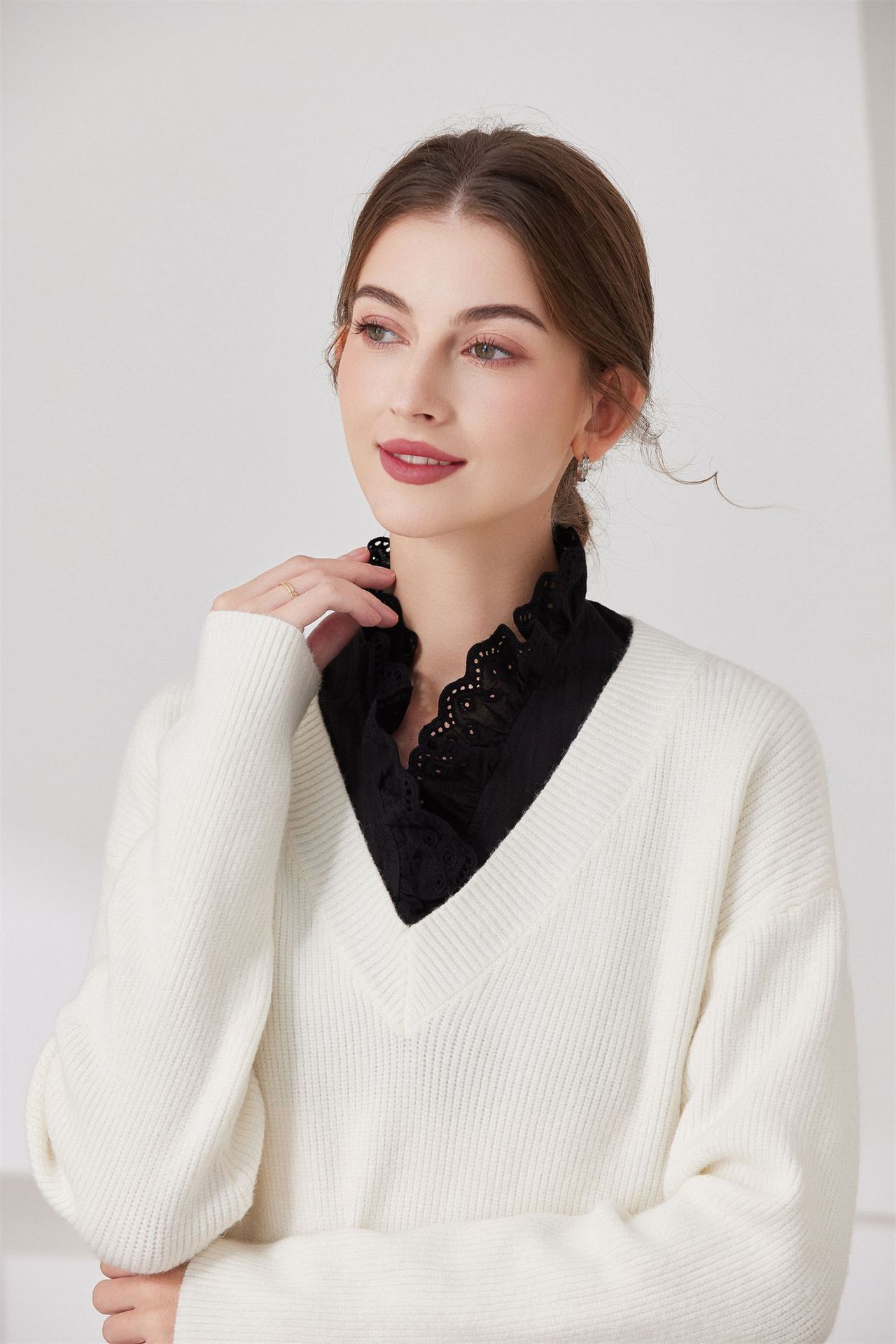 Женский осенне-зимний свитер-базовый слой с воротником-стойкой, универсальный воротник-стойка с оборками, воротник-стойка от производителя для международных рынков