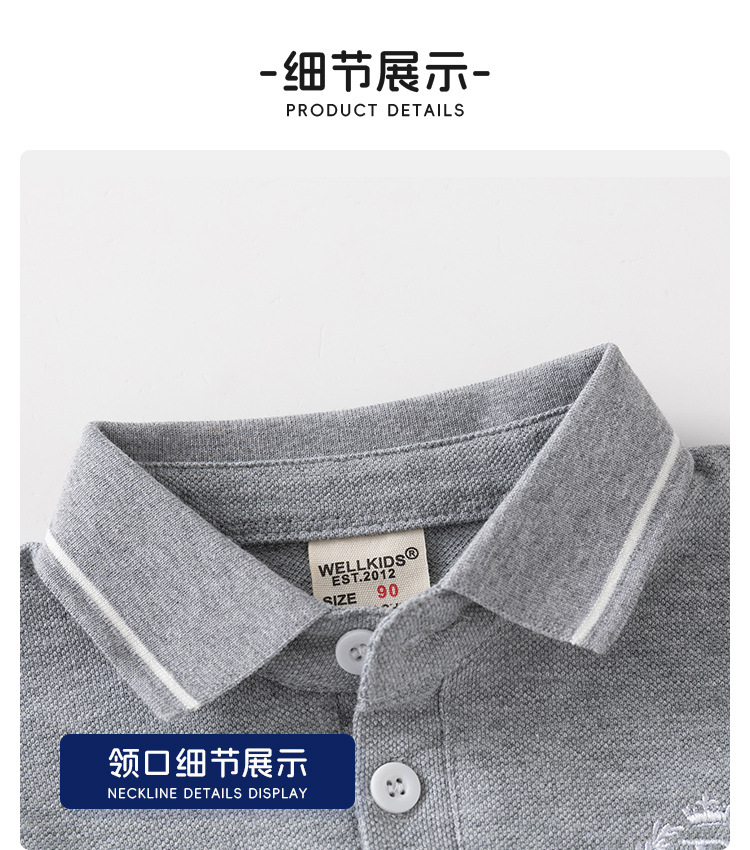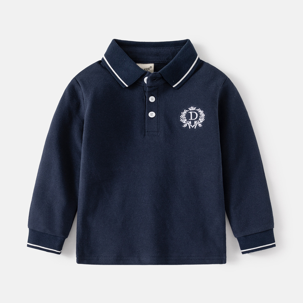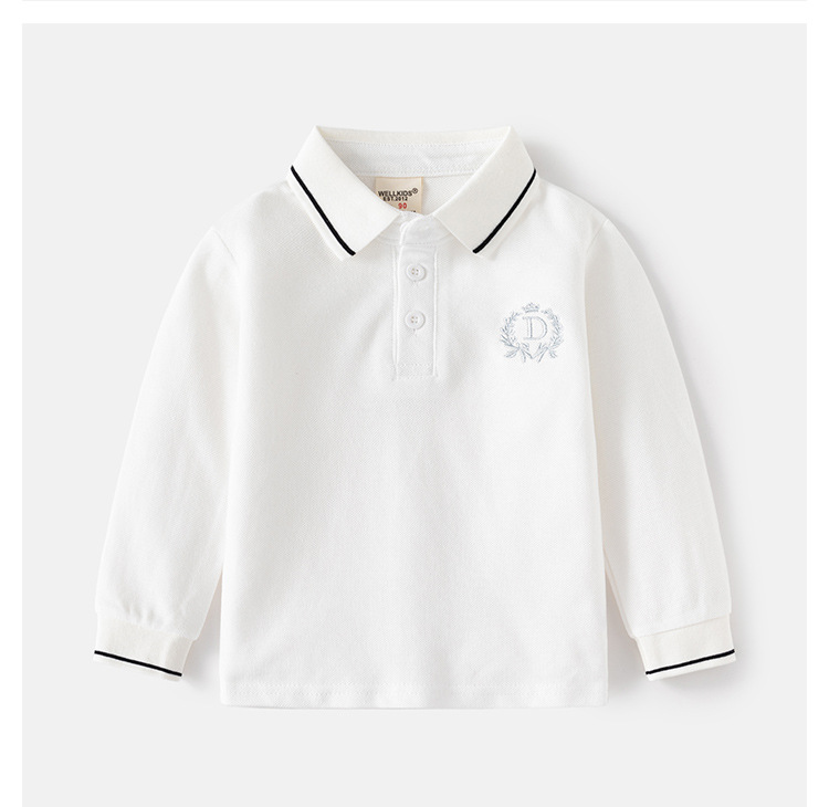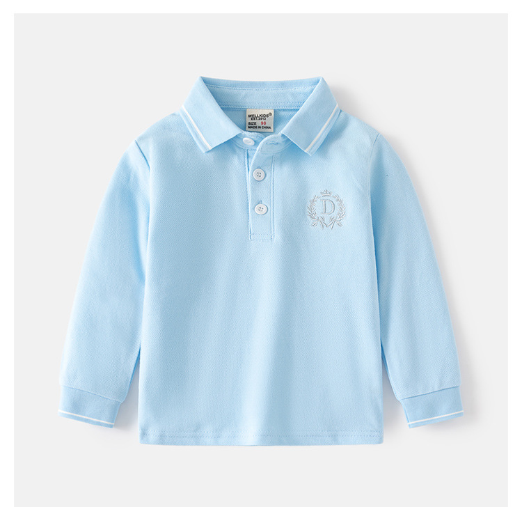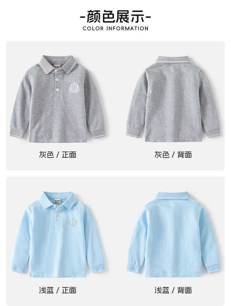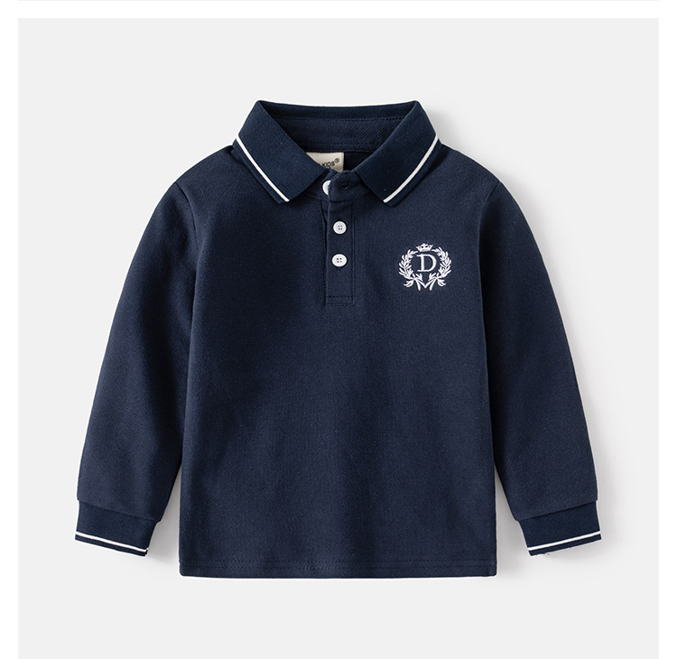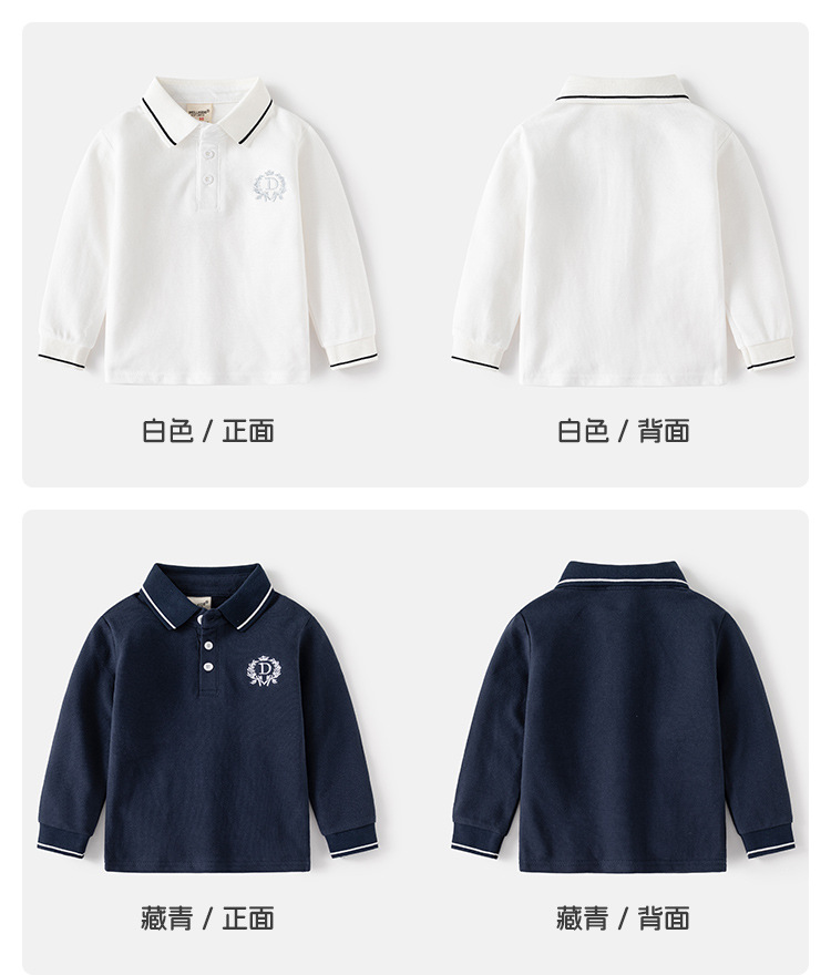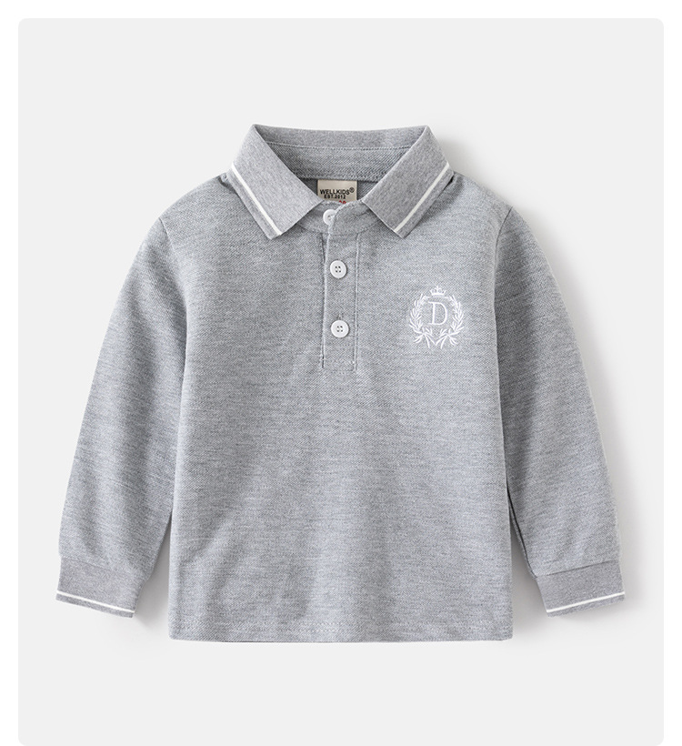 Детская поло-футболка 2025 осень новая коллекция для мальчиков однотонная с отложным воротником, длинный рукав, детский пуловер, оптовая продажа для экспорта
