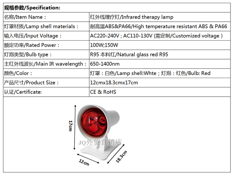 Трансграничная поставка лампы для косметической терапии Модель B Amazon красный свет рядом с инфракрасной лампой ИК-терапевтическая лампа