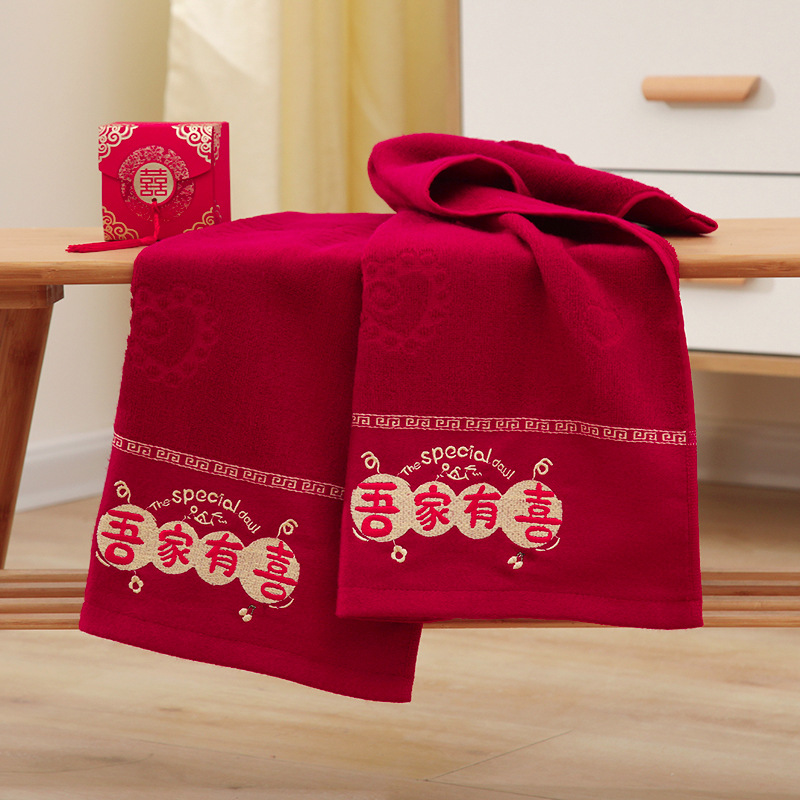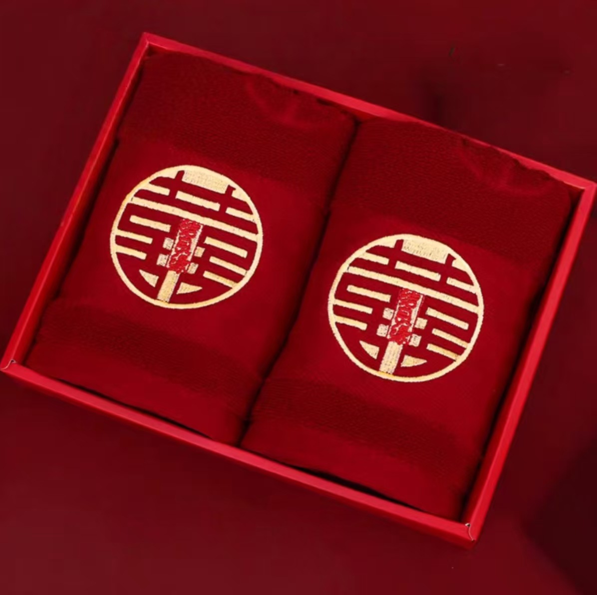 Винно-Красное Свадебное Полотенце из бамбукового волокна Xi персонаж Подарочная коробка для вышивки Свадебное Полотенце возвратное полотенце свадебный банкет подарок