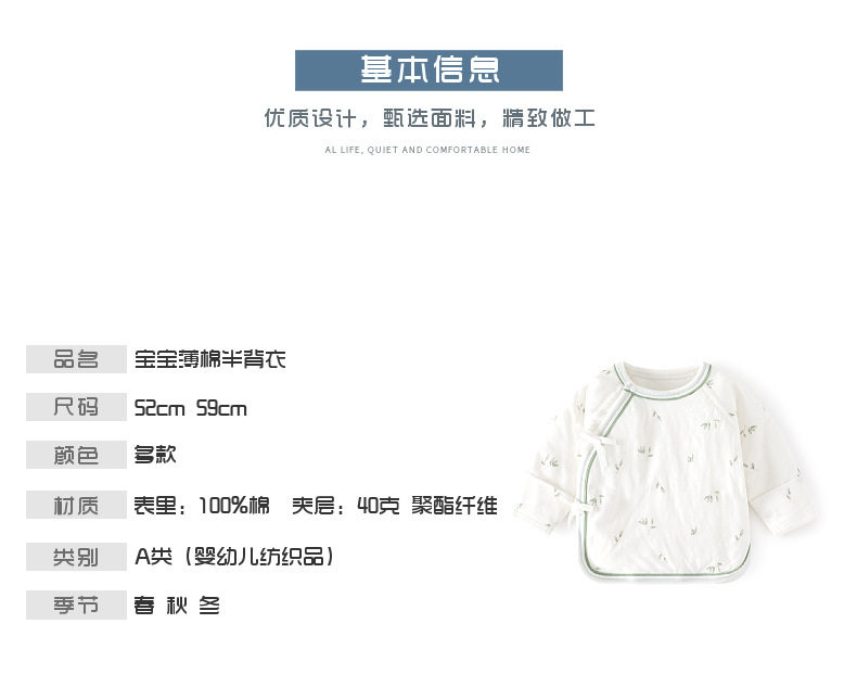 Новорожденный ребенок хлопок с половиной спины, теплая внутренняя одежда