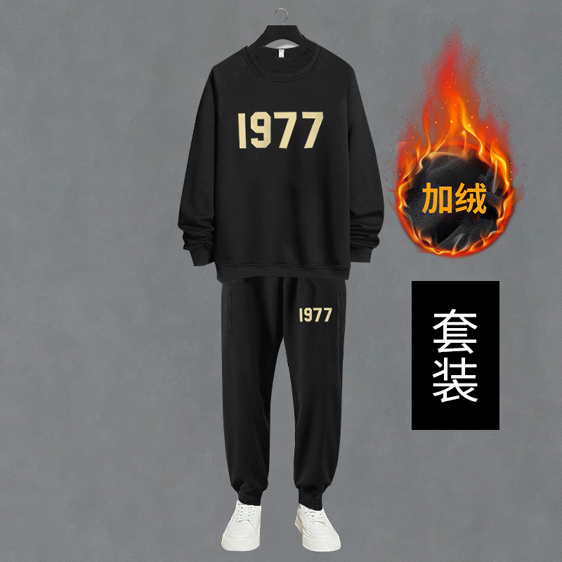 DW1018-DK2018 Очень большой размер 400 кг спортивный хлопковый костюм толстый свитер брюки мужские осенне-зимние флисовые подкладки плюс