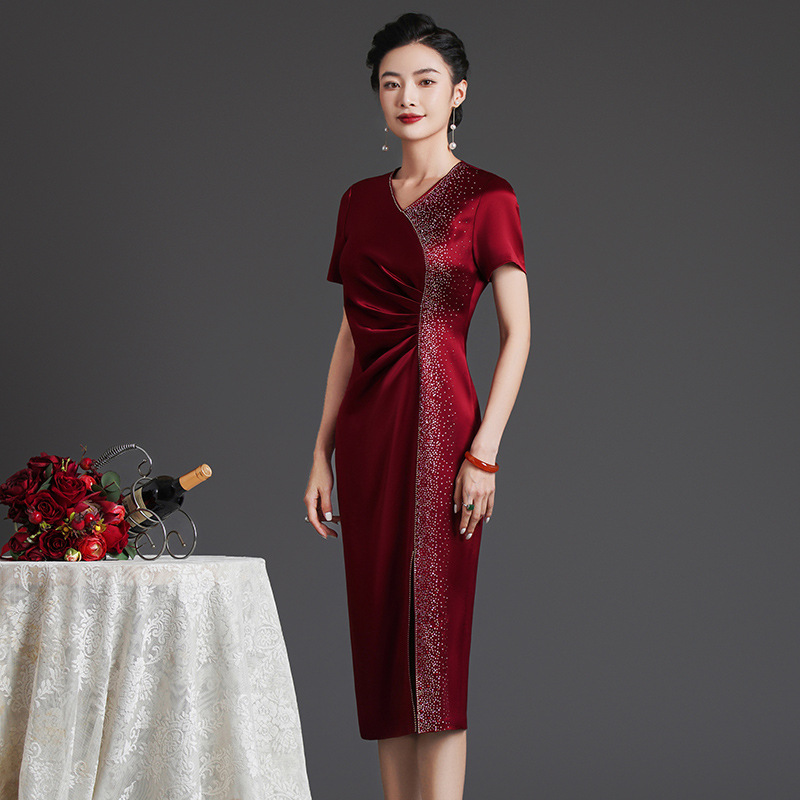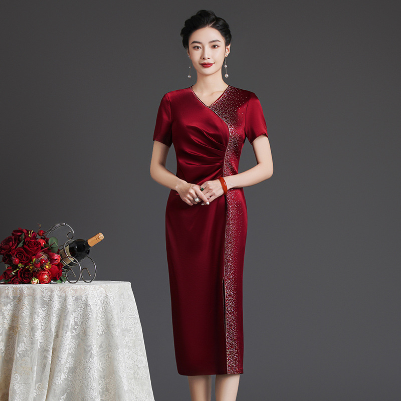Высококачественное атмосферное свадебное платье Осеннее свадебное платье средних лет мама винно-красное платье улучшенное cheongsam