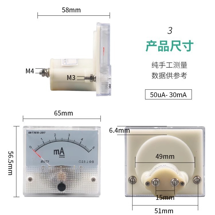 85C1-10A указатель Головка амперметра постоянного тока 1A2A3A5A50A500mA100uA30mA50mA ампер