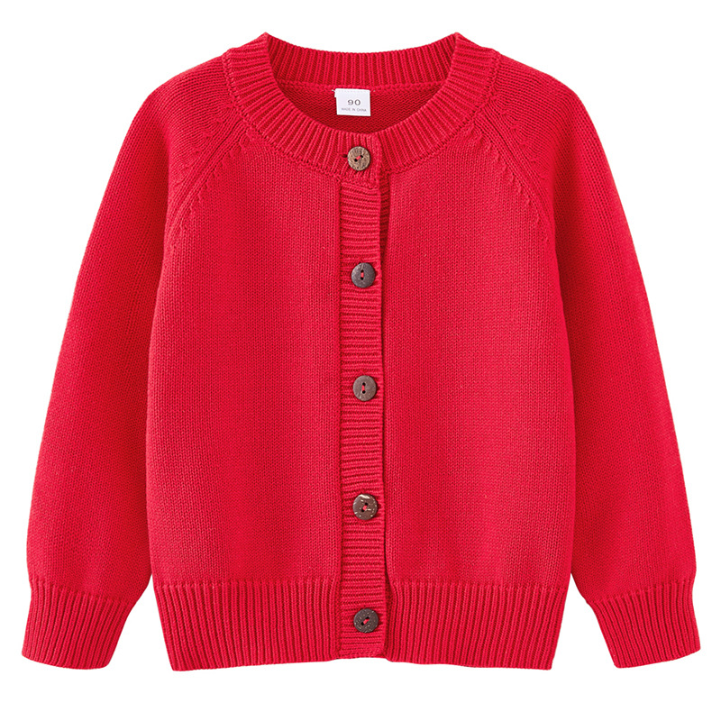 2025 Весенняя и Осенняя детская одежда с круглым вырезом сплошного цвета трикотажный кардиган для детей с дикими хлопковыми нитками свитер для мальчиков и девочек с длинными рукавами