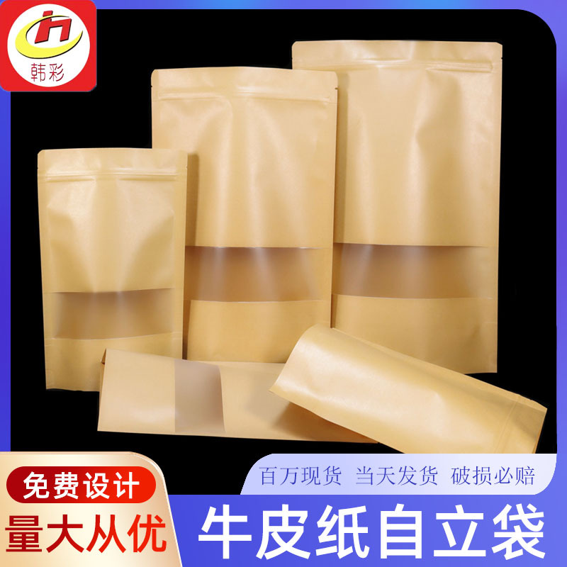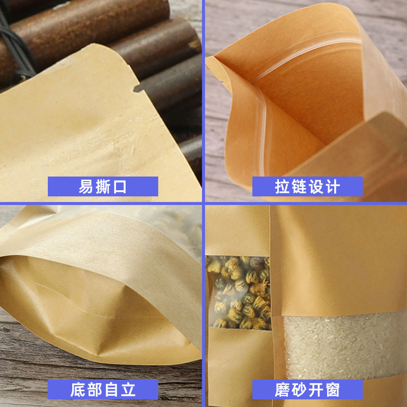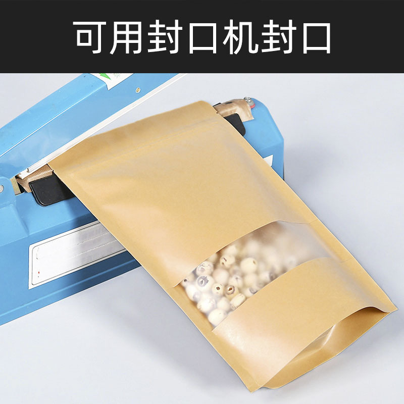 开窗牛皮纸袋磨砂透明茶叶包装袋坚果休闲食品自封袋密封牛皮纸袋