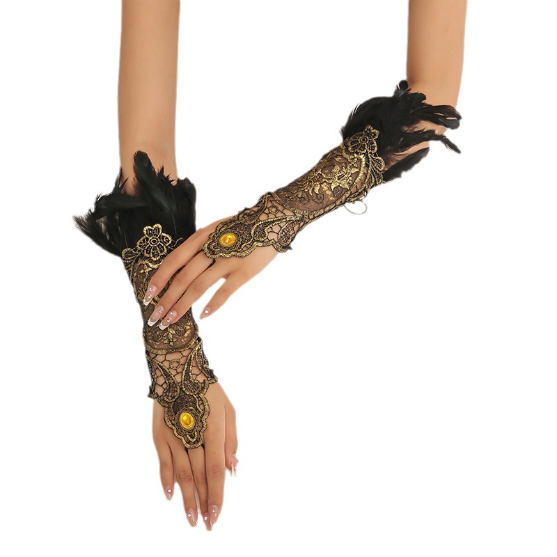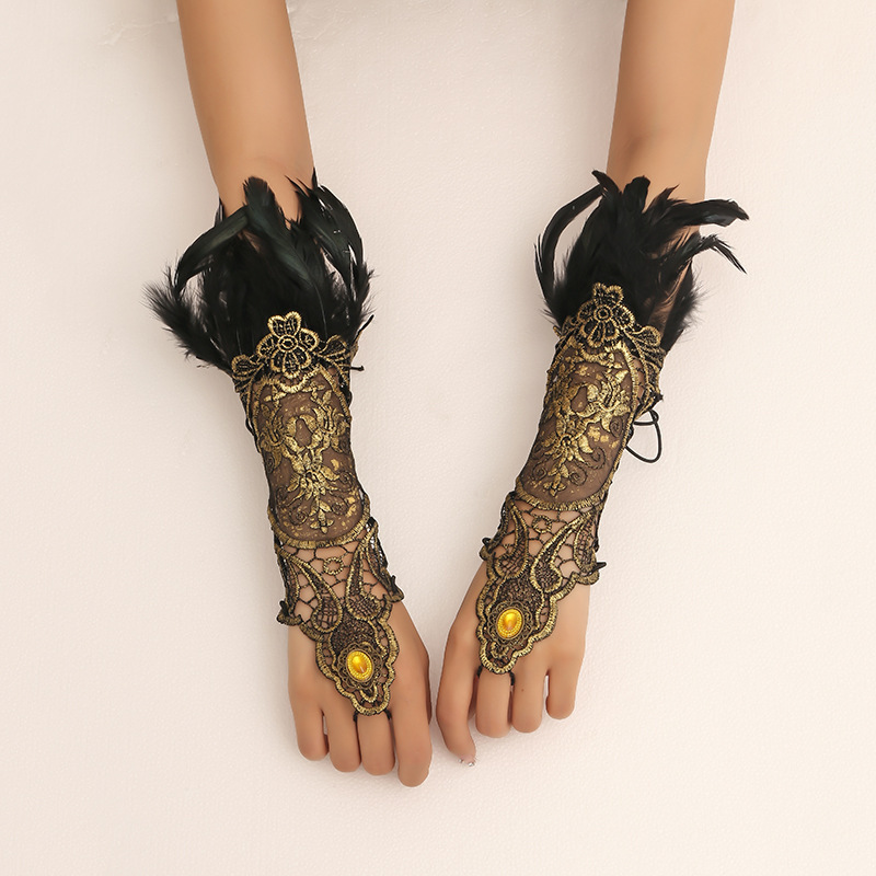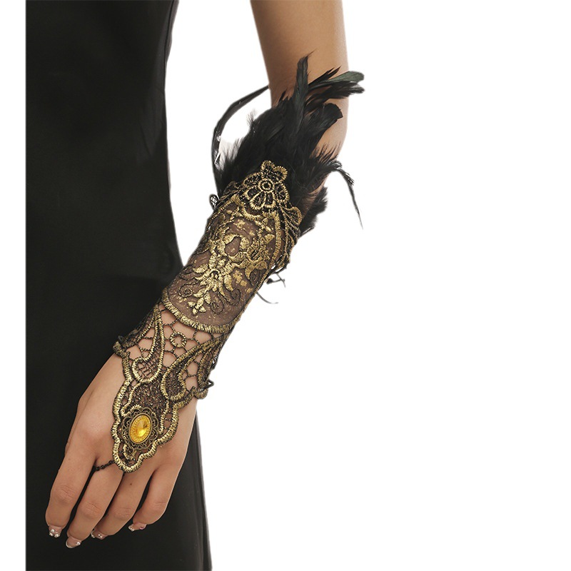 Хэллоуин темные перья манжеты ювелирные изделия европейский и американский стиль Готический реквизит для выступлений браслет кружевные перчатки браслет трансграничный