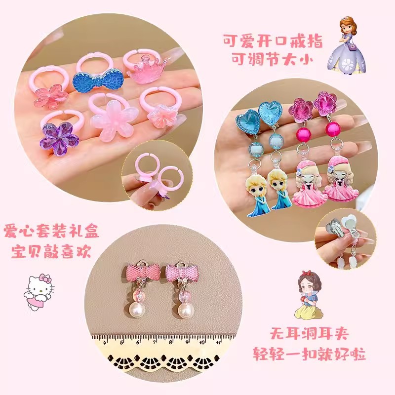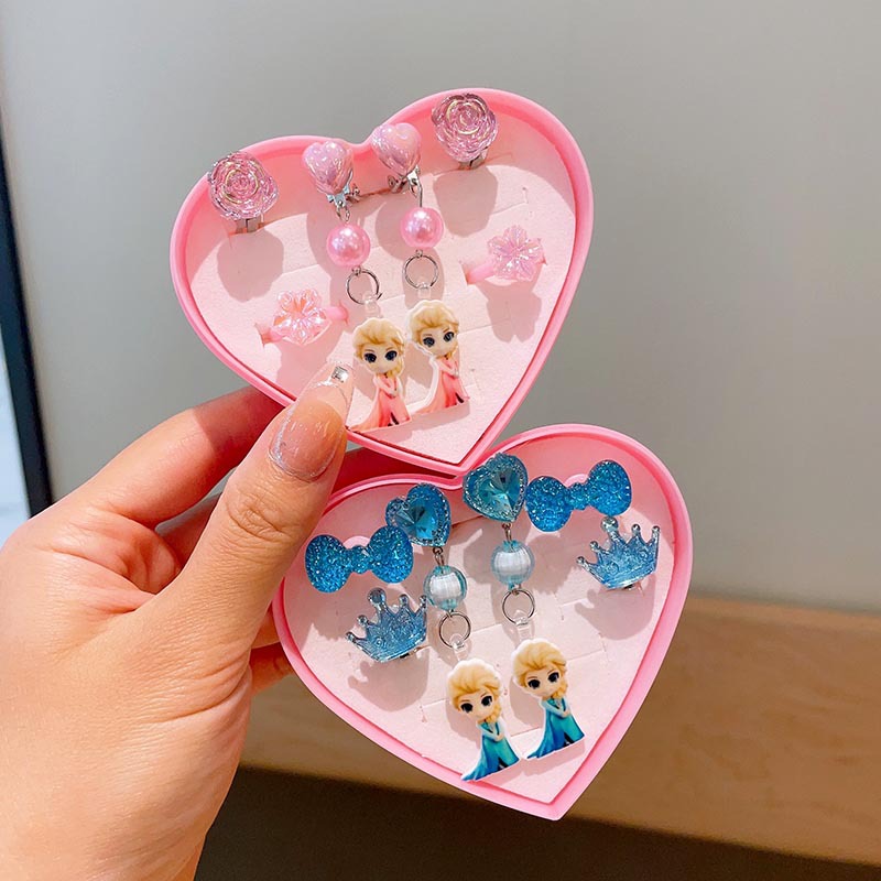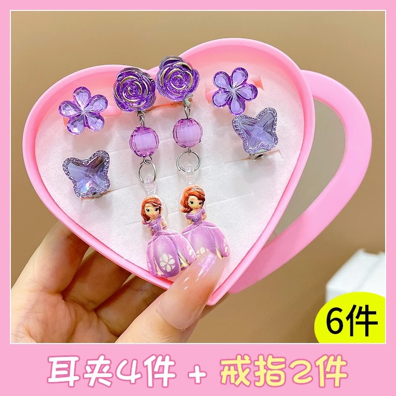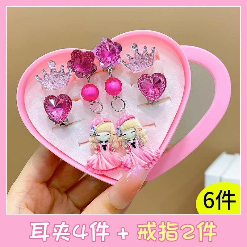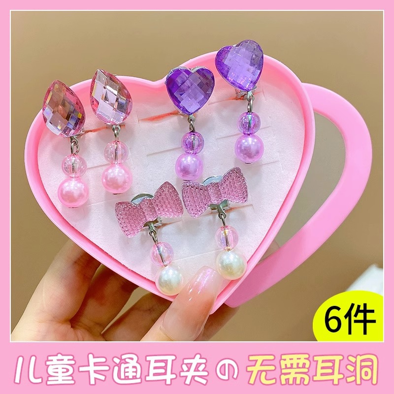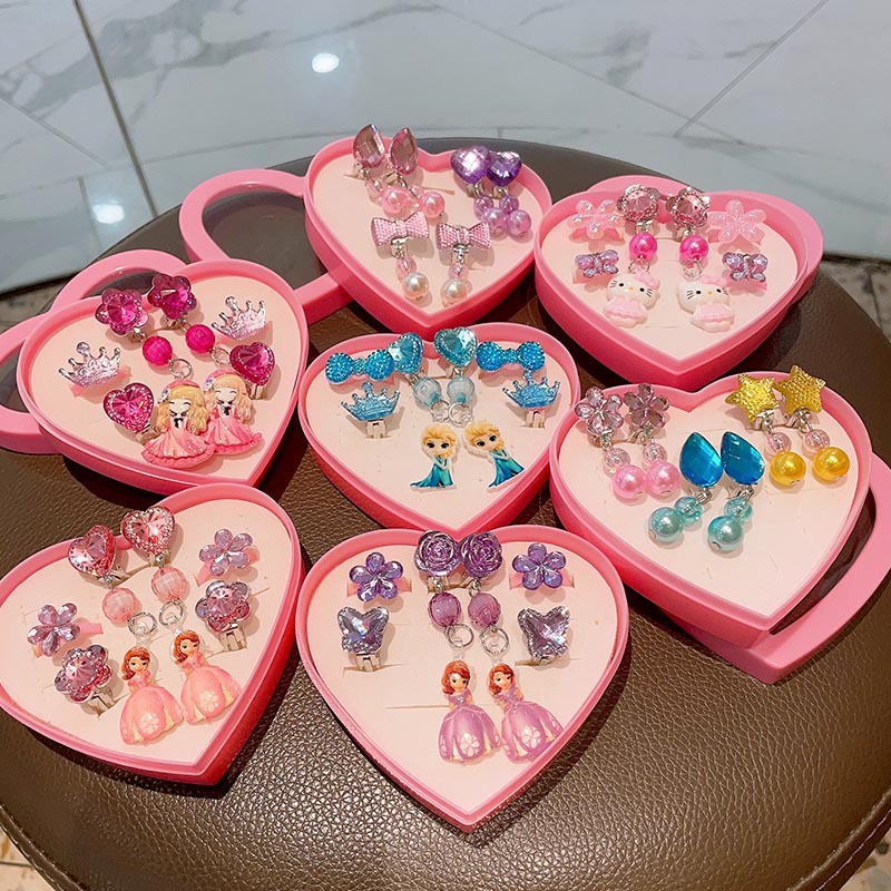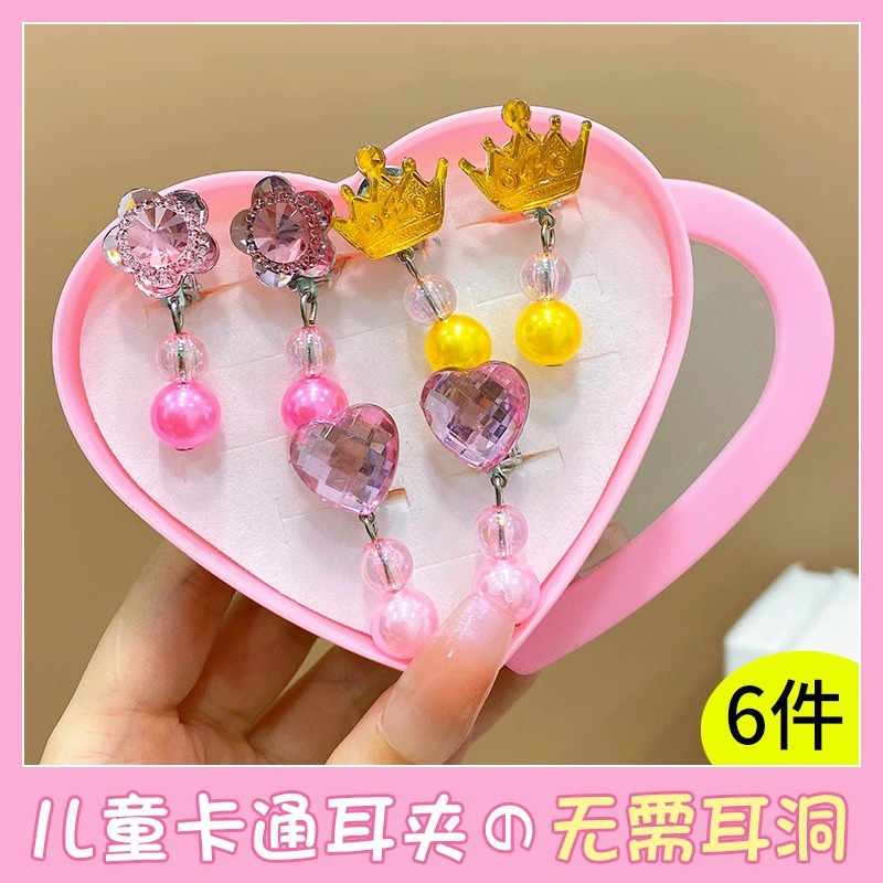 Детские Серьги Зажимы для ушей отверстия для ушей детская принцесса милый драгоценный камень девушка поддельные серьги ювелирные изделия кольцо костюм оптом