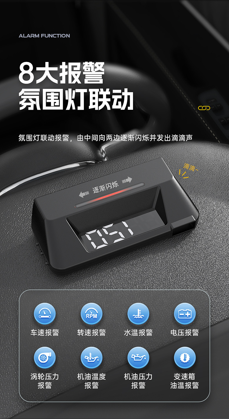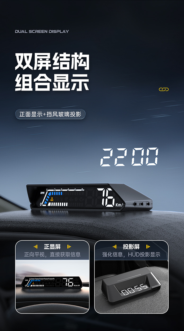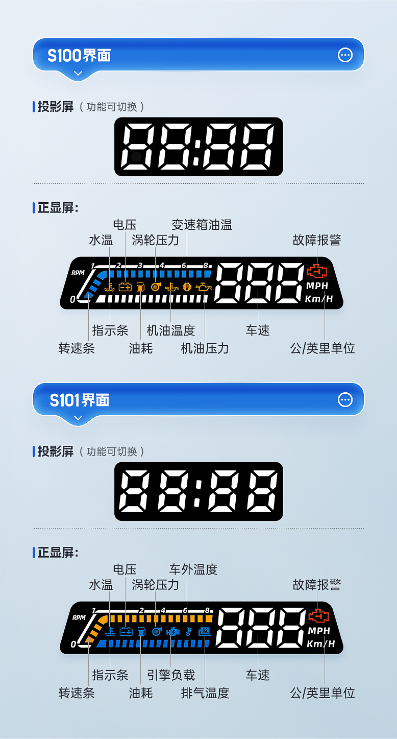 Hud Head Display obd Многофункциональный автомобильный прибор температуры масла, коробка передач, контроль температуры масла, двойной экран S100