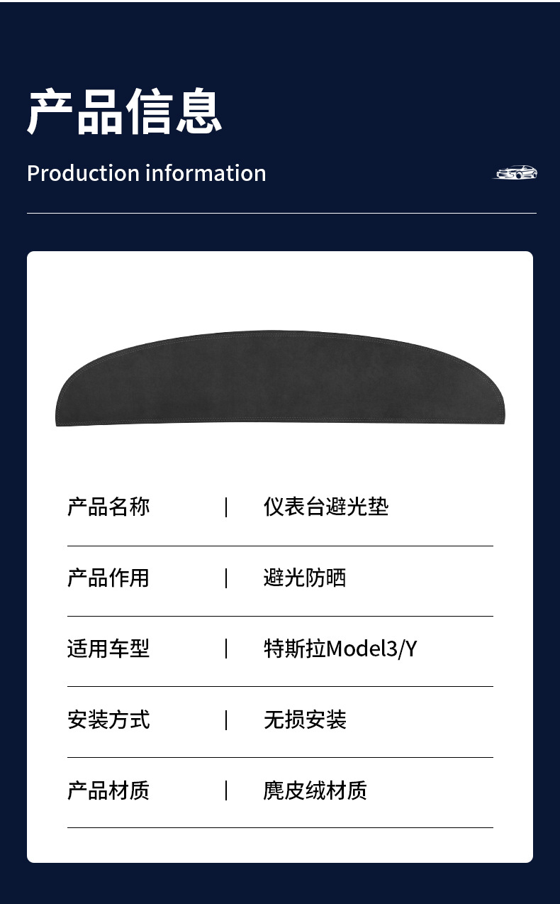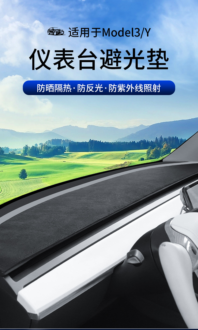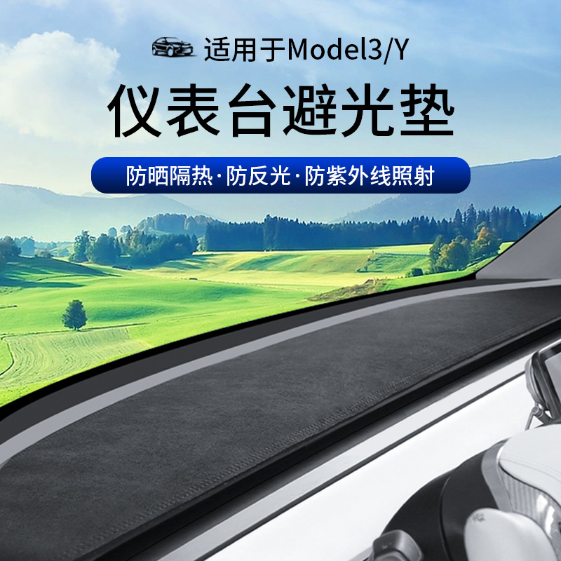 Подходит для новой версии Tesla Model Y/3: светонепроницаемый коврик для приборной панели, замшевый, солнцезащитный и теплоизоляционный, оптом.