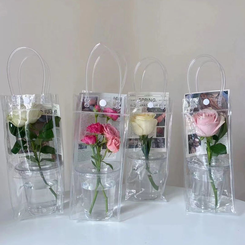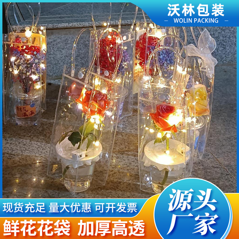 Цветочные пакеты для ларьков на ночном рынке, цветы в чашках для фестиваля Циси, модные прозрачные подарочные пакеты для молочного чая, прозрачные сумки-тоут.