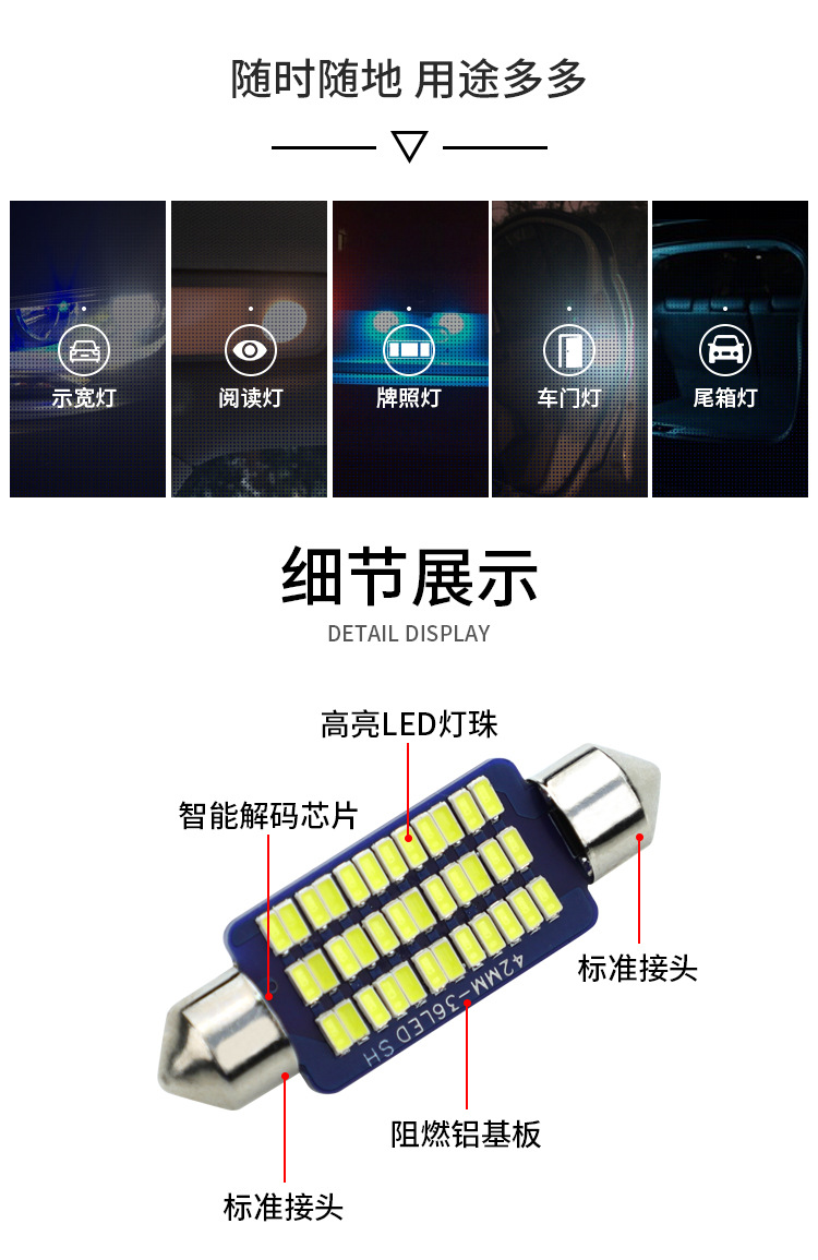 Автомобильный двойной Точечный светильник лампа для чтения светодиодный светильник для номерного знака дверной светильник на крыше T10 ширина света 36MM31 комбинированный костюм
