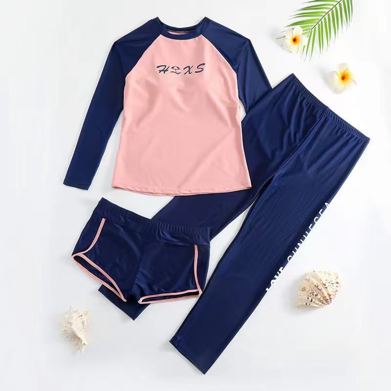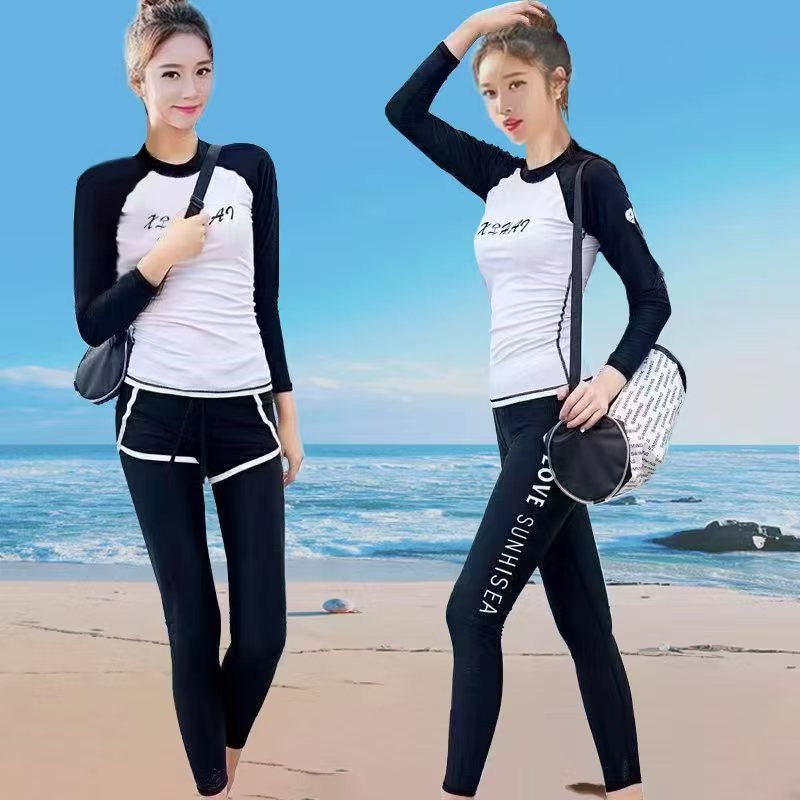 Костюм серфера 2023 Новый купальник Женский Комплект из трех предметов Консервативные Студенческие Брюки с длинными рукавами Спортивный купальник с горячей весной