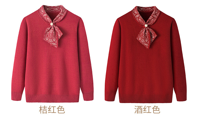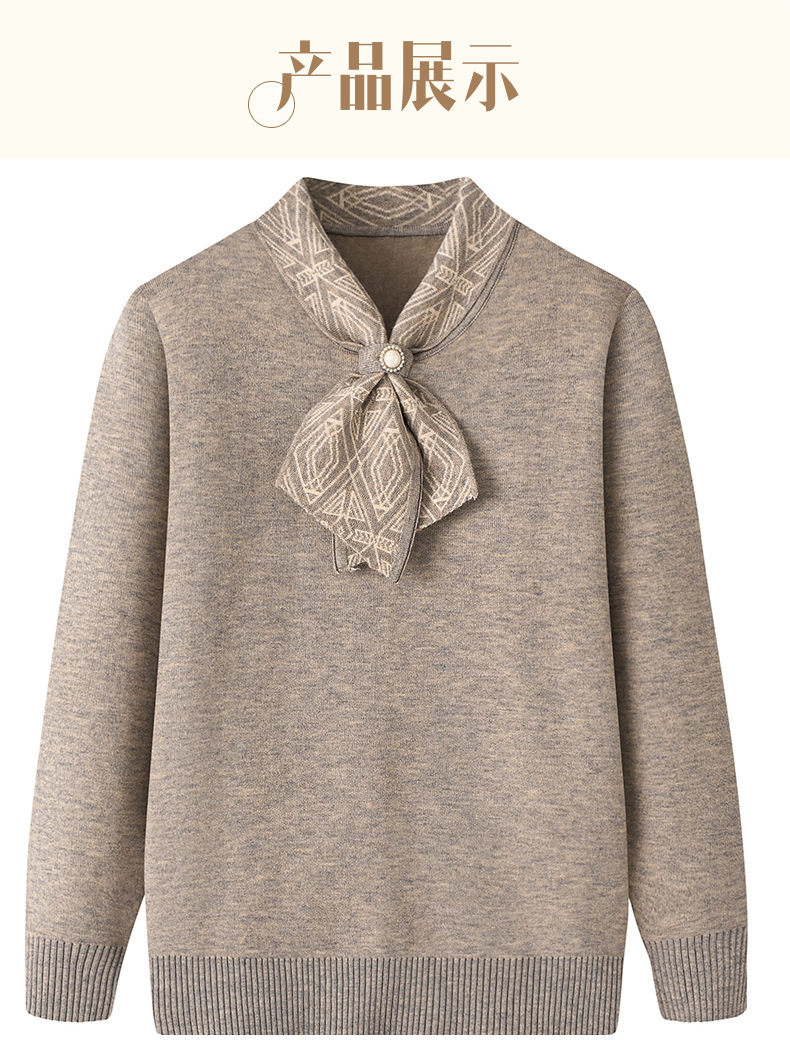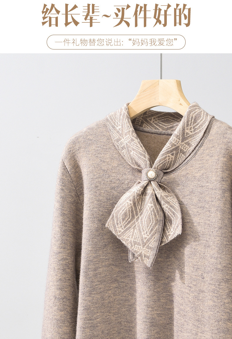 Женская осенне-зимняя вязаная Базовая рубашка среднего и пожилого возраста, утолщенный пуловер-свитер на флисовой подкладке в иностранном стиле с воротником до локтя