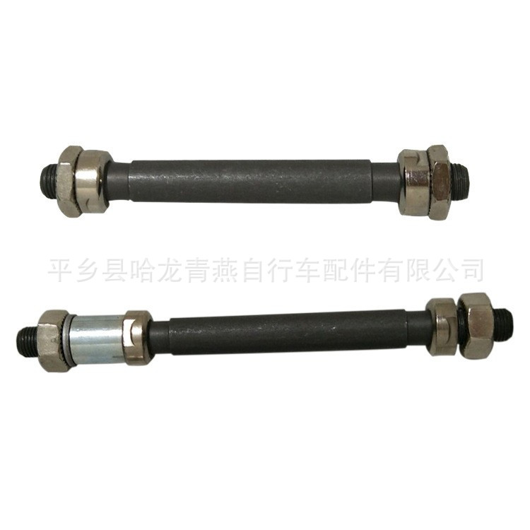 材质:黑色45号钢尺寸:前快拆杆:145MM,前空心轴:108MM.
