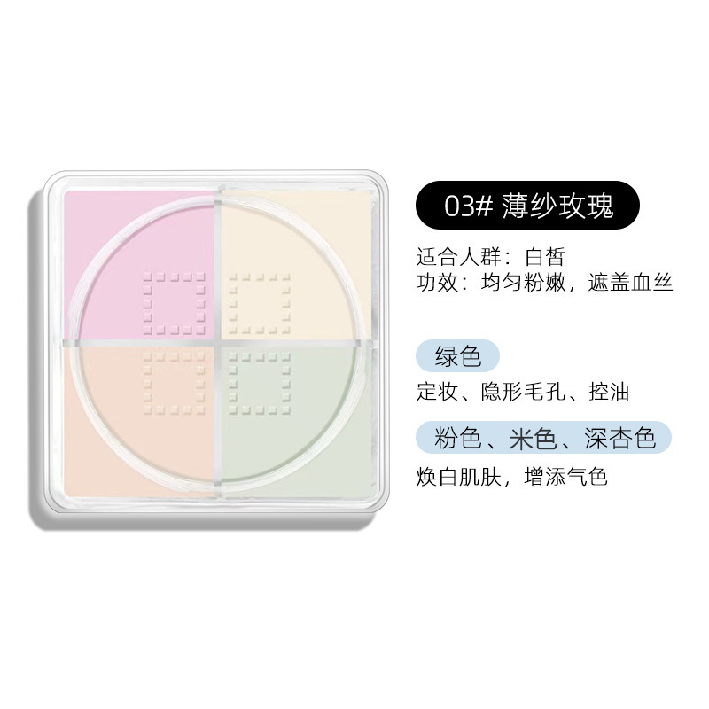 Рамила для макияжа с четырьмя сетками рассыпчатая пудра водостойкая, устойчивая к поту, без макияжа, стойкая консилер-пудра для торта для сухой кожи, жирной кожи, медовая пудра