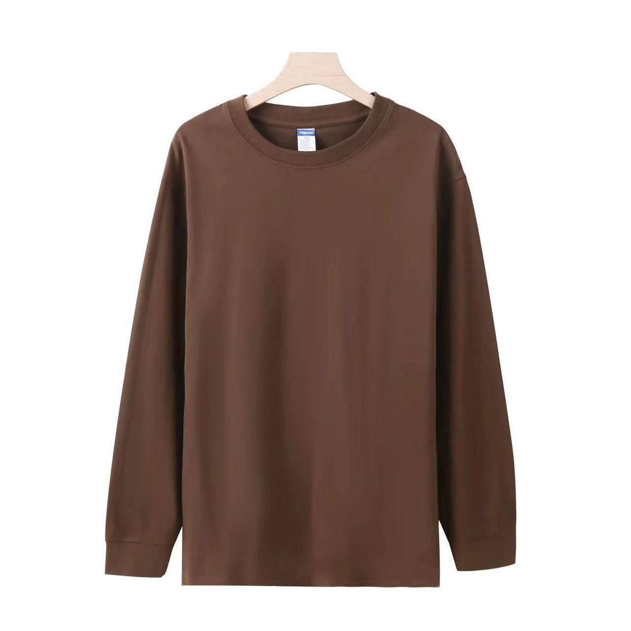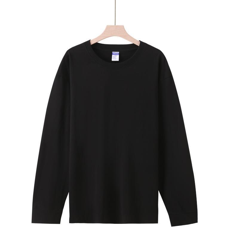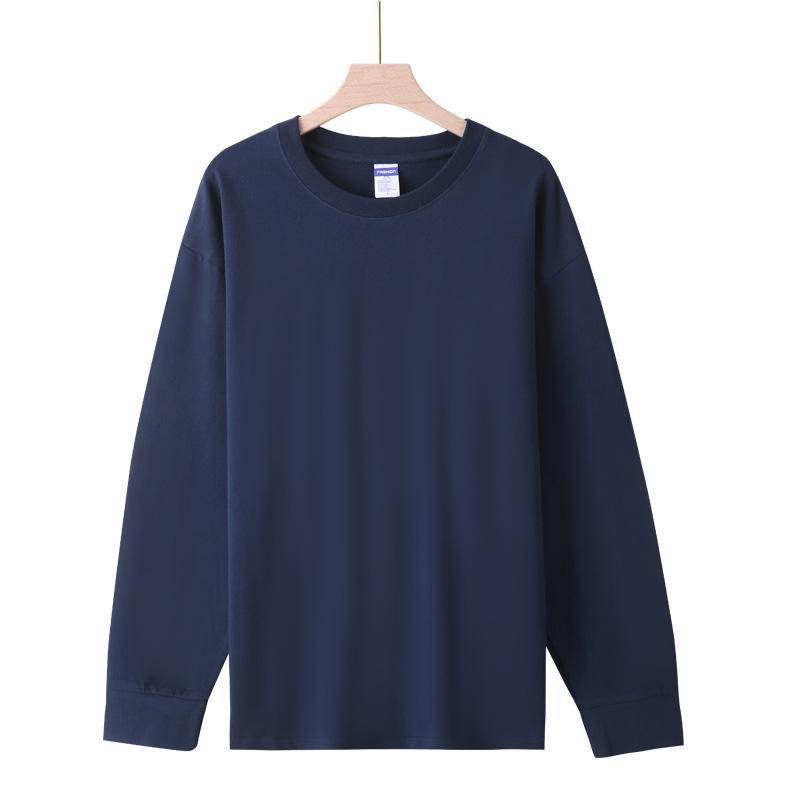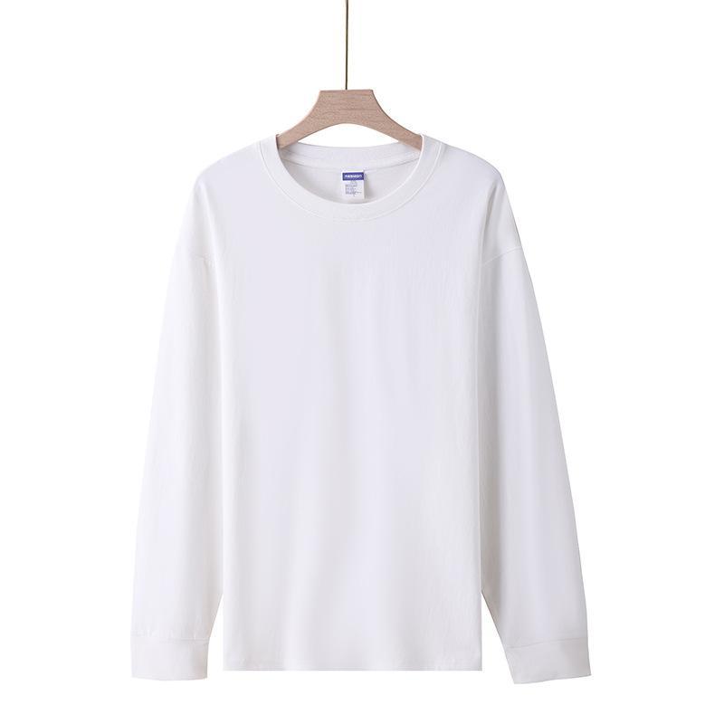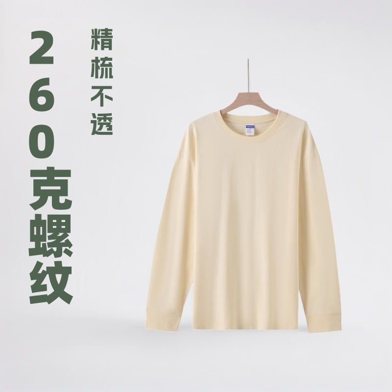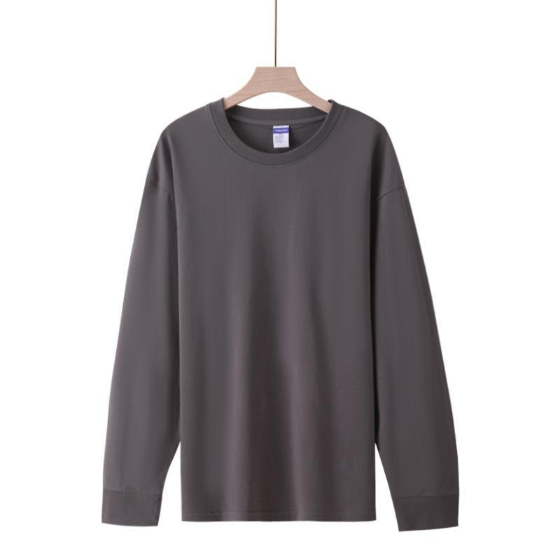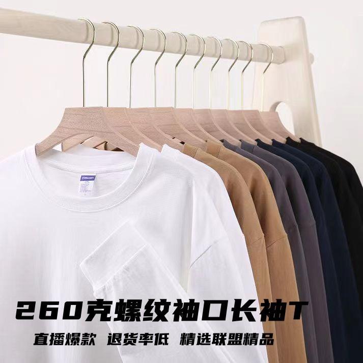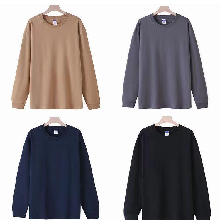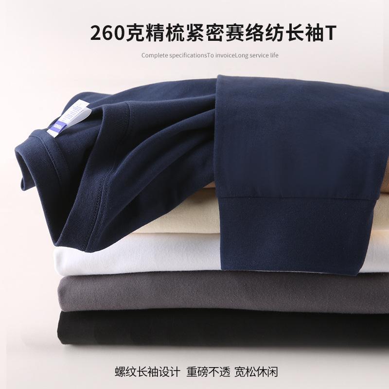 Футболка с длинным рукавом и резьбой 260 г, плотная Мужская и женская однотонная хлопковая верхняя одежда, осенняя одежда, Базовая рубашка