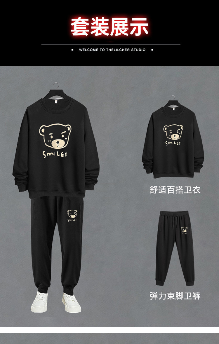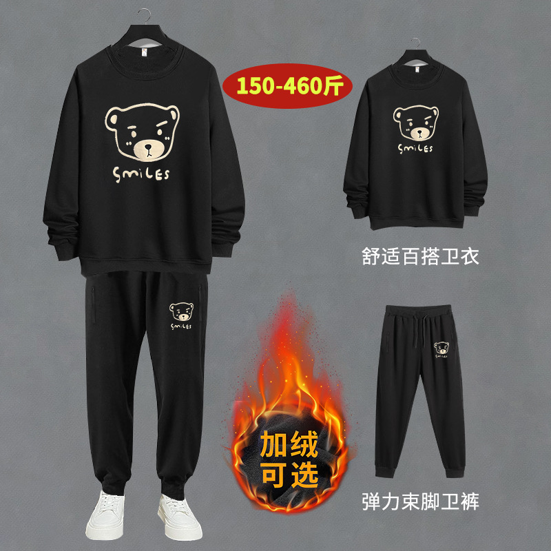 DW1027-DK2027 Спортивный хлопковый костюм большого размера 400 облегающий свитер брюки мужские осенне-зимние флисовой подкладке плюс
