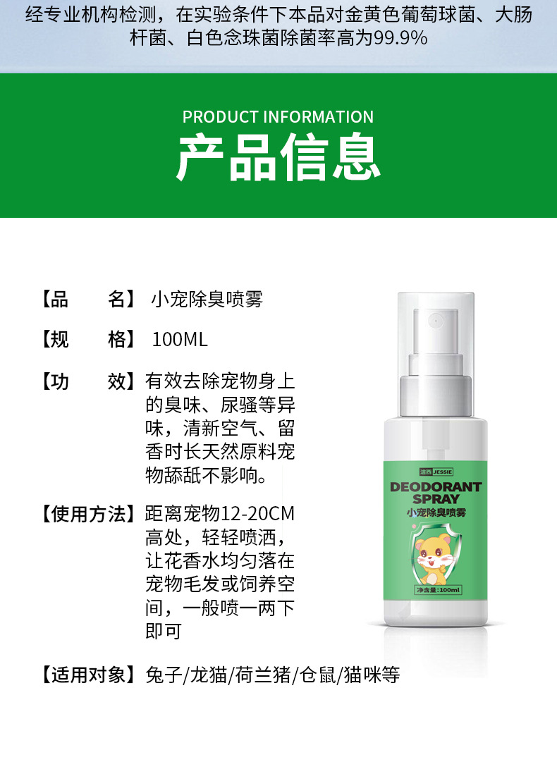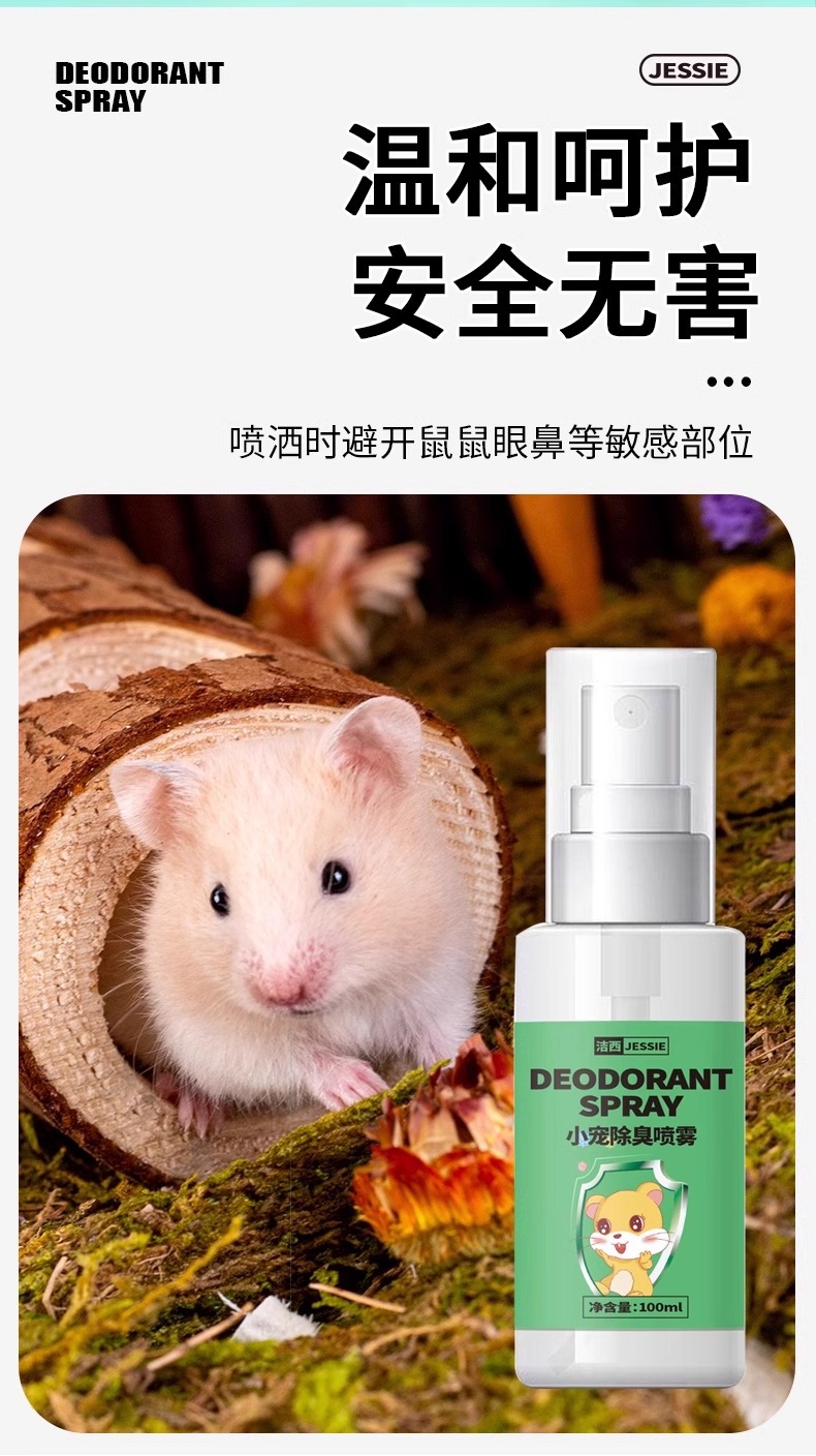 Дезодорирующий спрей для морских свинок, хомяков и кроликов Jessie, 100 мл, сохраняющий аромат, антивирусный, для удаления запахов