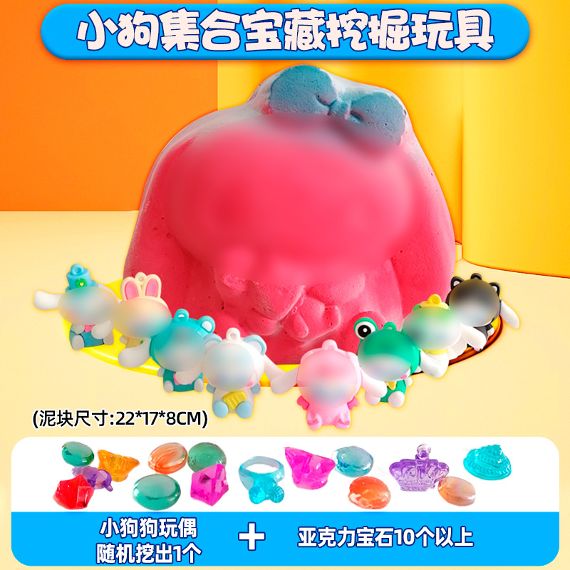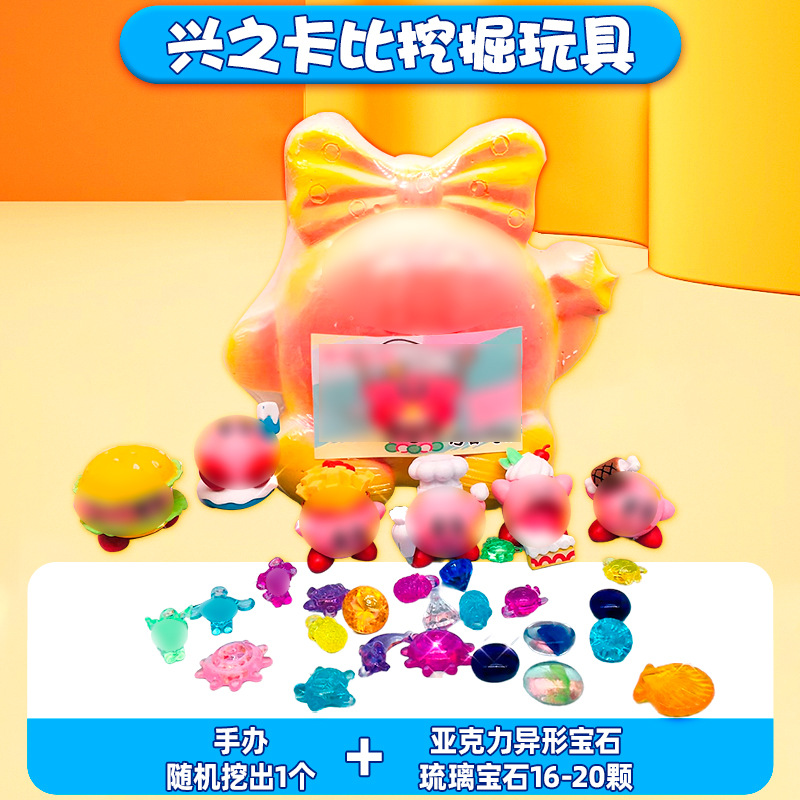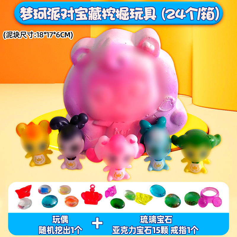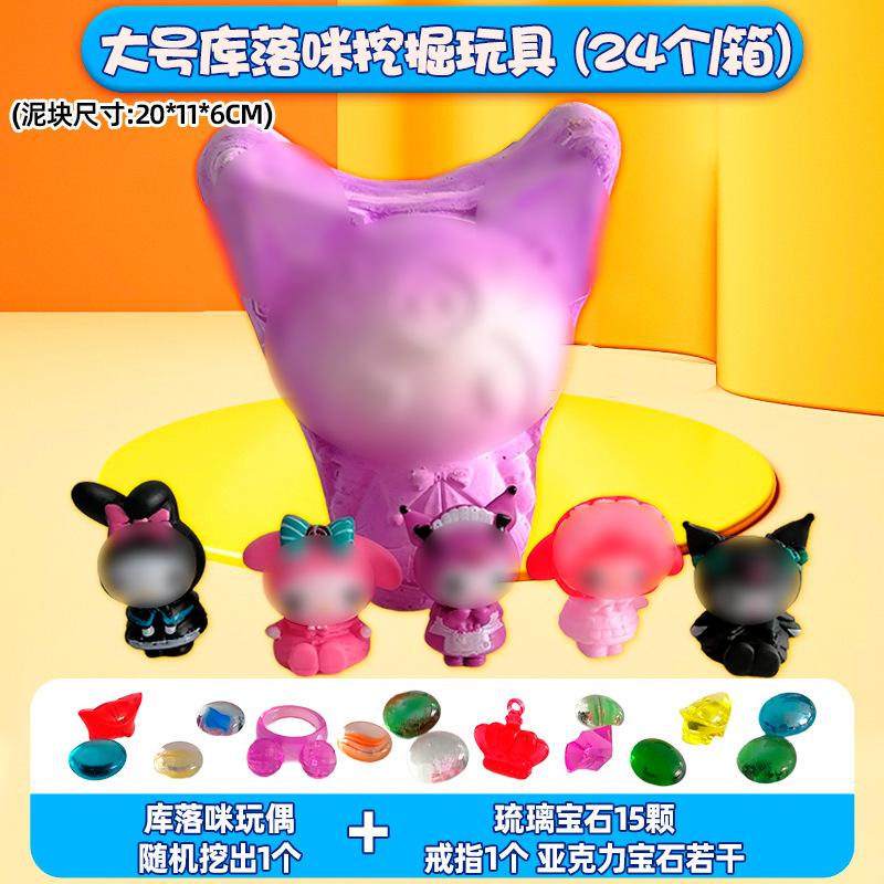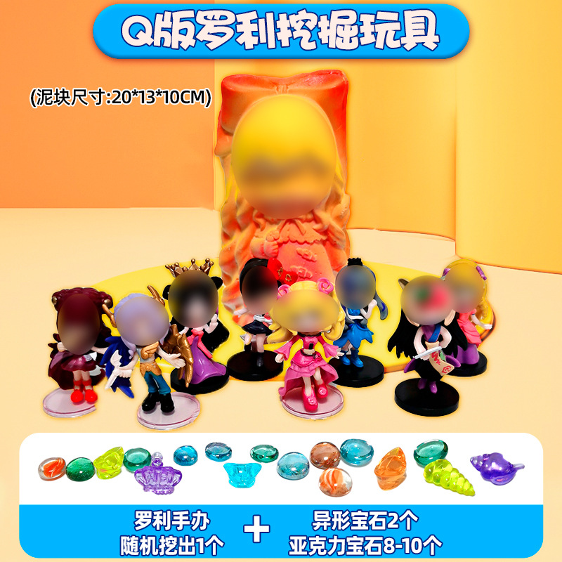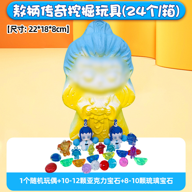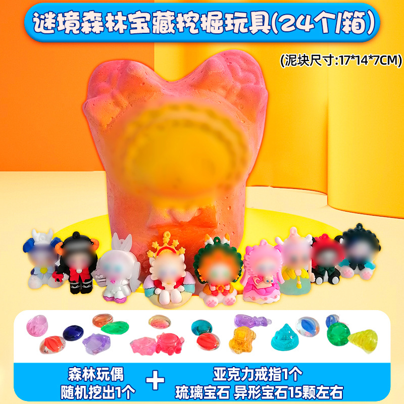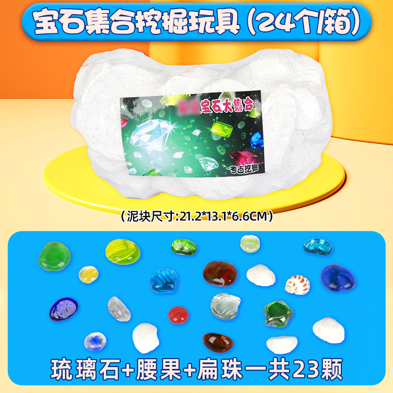 Набор инструментов из трех предметов (молоток + отвертка + щетка); Маленький динозавр (1 случайно собранный динозавр); Маленькая бронза (1 случайная маленькая бронза); Маленький размер — Воин из терракоты (1 случайный воин из терракоты); Маленький размер — серия драгоценных камней (случайным образом выкопайте 6 драгоценных камней); Большой размер — собранный динозавр (случайным образом выкопайте 1 собранный динозавр); Большой размер - светящийся динозавр в сборе (случайным образом выкопайте 1 светящегося динозавра в сборе); Большой размер - Xingdailu (1 случайная кукла + 1 акриловая корона, камень специальной формы + 15 стеклянных драгоценных камней/разноцветных драгоценных камней); Большой размер - игрушка-медведь-копатель (1 случайный медведь + 1 акриловый камень в форме короны + 15 стеклянных драгоценных камней/разноцветных драгоценных камней); Большой размер - Сокровище в лесу (1 случайная лесная кукла + 1 акриловое кольцо + стеклянные камни/камни иностранной формы, около 15 штук); Большой размер - большая коллекция драгоценных камней (глазурованные камни + орехи кешью + плоские бусины, всего 23 штуки); Большой размер - пляжное сокровище (большая колючая улитка + ракушка + раковина + разная улитка + 6-8 стеклянных бусин); Большой размер - Капибала (1 случайная кукла + около 10-12 акриловых камней + около 8-10 стеклянных камней); Большой размер — Марио (1 случайная кукла + около 10-12 драгоценных камней специальной формы + около 8-10 стеклянных драгоценных камней); Большой размер — Zero Nabell (1 случайная кукла + 2 драгоценных камня специальной формы + 10 акриловых драгоценных камней); Большой размер - Волшебный сменный браслет (1 случайный браслет + 1 кольцо + около 10 акриловых камней + около 8 стеклянных камней); Большой размер - пары черепах (1 случайная фигурка черепахи + 4 черепахи из искусственного хрусталя + около 15-20 акриловых бриллиантов/драгоценных камней специальной формы/стеклянных драгоценных камней); Большой размер — раскопки пони (1 кукла пони + 2 пони из искусственного хрусталя + 1 акриловое кольцо + 15–20 стеклянных драгоценных камней специальной формы + карточка пони); Большой размер — Гигантская панда (1 случайная кукла панды + около 12 акриловых драгоценных камней + около 8 стеклянных драгоценных камней); Большой размер — браслет для родителей и детей (случайным образом выкопайте большой и маленький градиентный браслет для родителей и детей); Большой размер - Ao Bing Legend (1 случайная кукла + 10-12 акриловых камней + 8-10 стеклянных камней); Большой размер - Come on Duck (1 случайная кукла из жареной утки + около 10-12 акриловых камней специальной формы + 8-10 стеклянных камней); Большой размер - Легенда о Неже (1 кукла случайного цвета + около 10-12 акриловых камней + 8-10 стеклянных камней); Большой размер — динозавр (1 случайный трехмерный динозавр из смолы); Большой размер — Куроме (1 случайная кукла Куроме + 1 кольцо + 15 акриловых и стеклянных камней); Большой размер — маленький спортивный автомобиль (2 случайные модели автомобилей + 2 акриловых автомобиля + 8 драгоценных камней специальной формы); Большой размер — раскопки сокровищ куклы Чиджи (1 случайный Чиджи + 1 случайное оружие + несколько акриловых драгоценных камней); Большой размер — Сокровище Маленького Медвежонка (2 куклы-медвежонки + акриловое кольцо + серия «Океан» + разноцветные драгоценные камни специальной формы + более 15 цветных