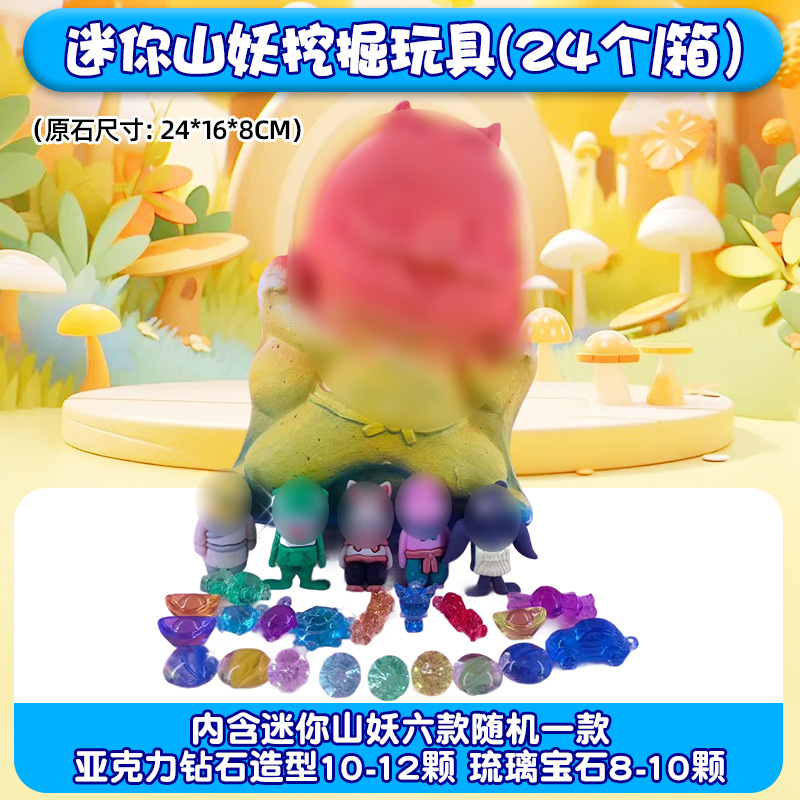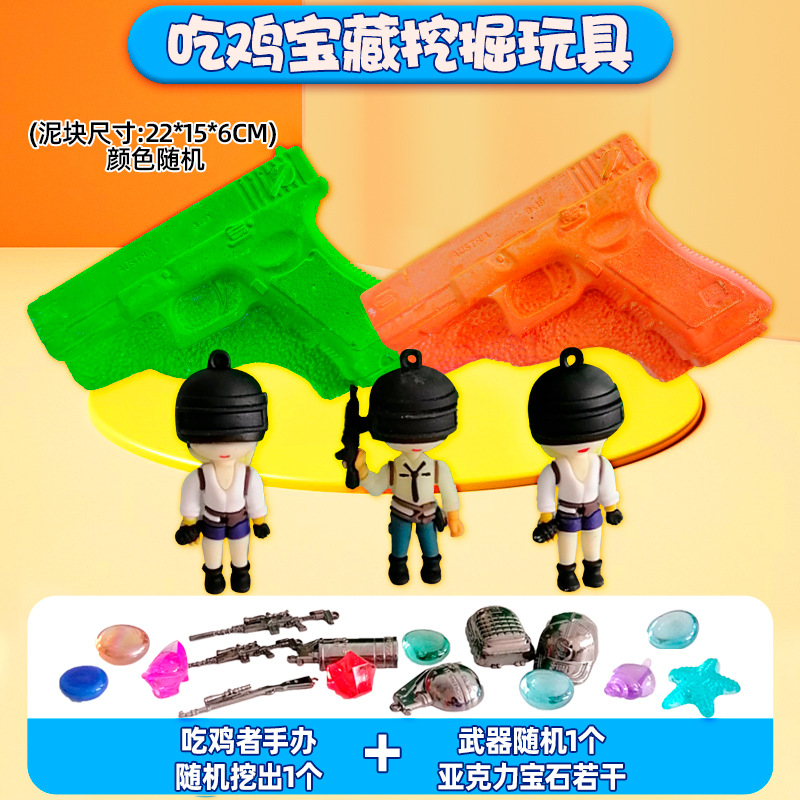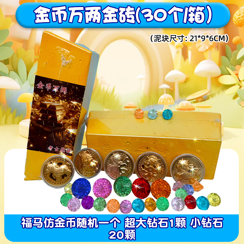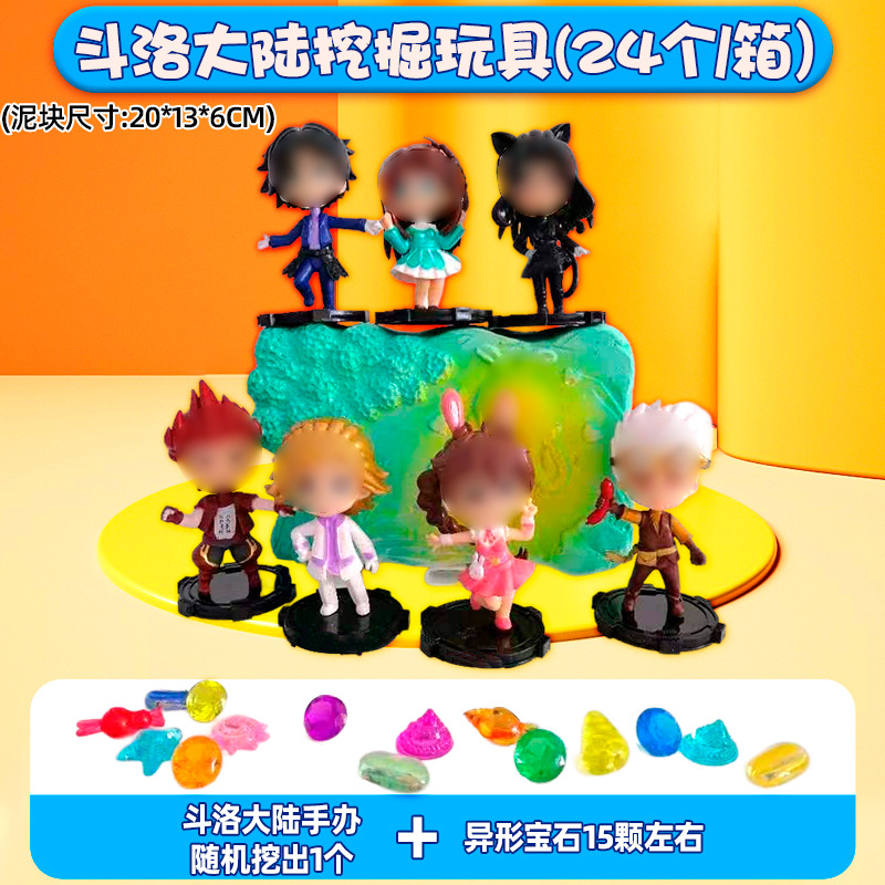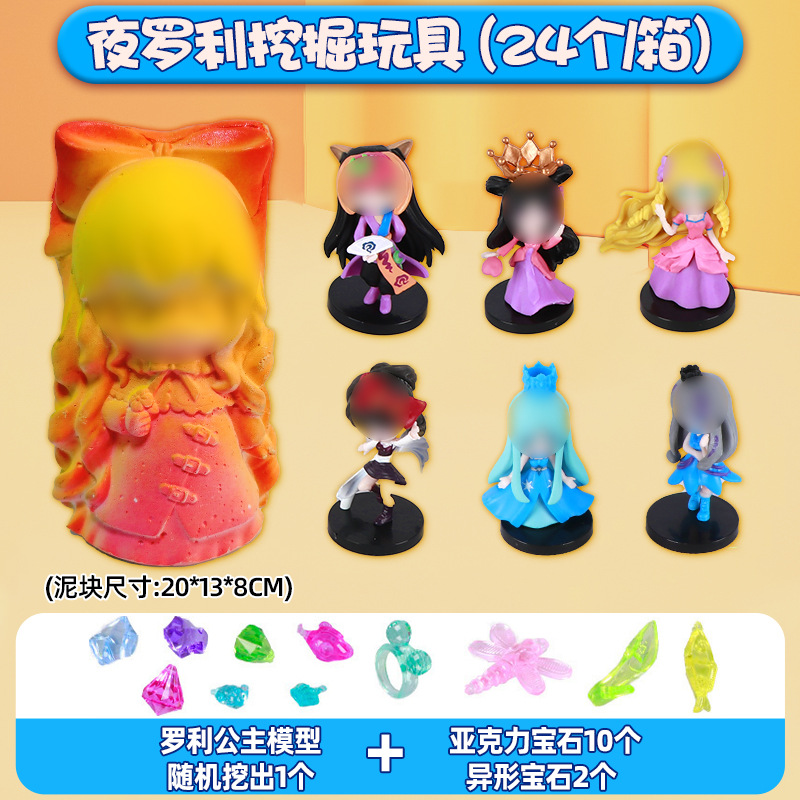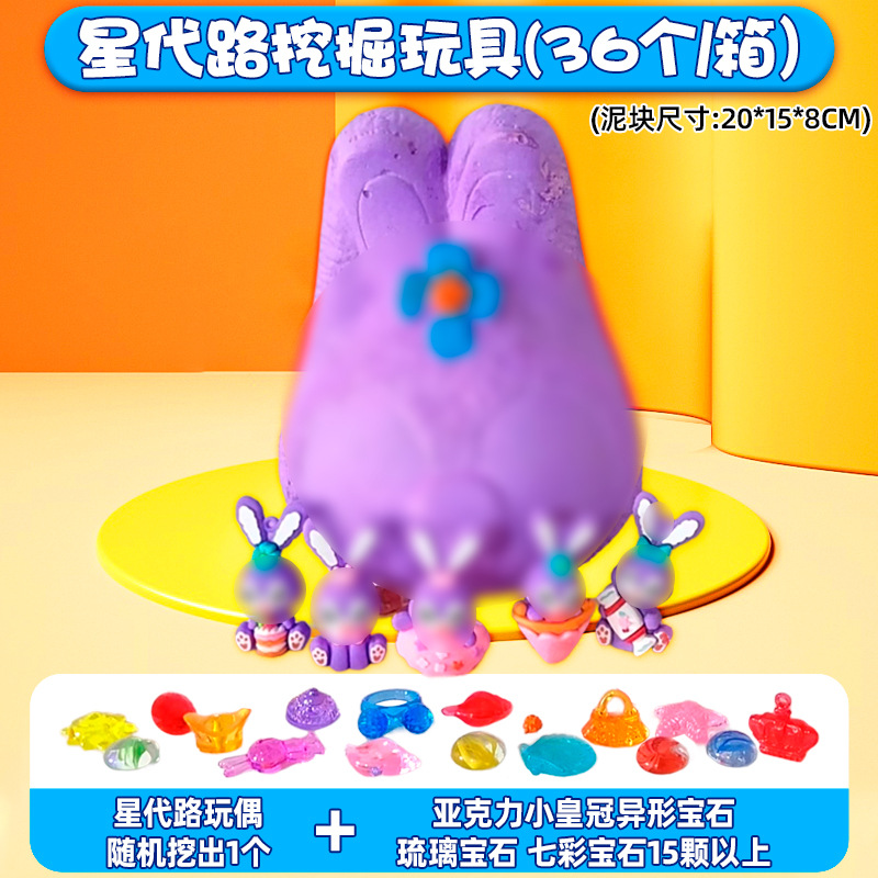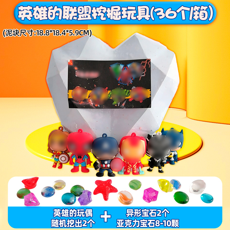 Набор инструментов из трех предметов (молоток + отвертка + щетка); Маленький динозавр (1 случайно собранный динозавр); Маленькая бронза (1 случайная маленькая бронза); Маленький размер — Воин из терракоты (1 случайный воин из терракоты); Маленький размер — серия драгоценных камней (случайным образом выкопайте 6 драгоценных камней); Большой размер — собранный динозавр (случайным образом выкопайте 1 собранный динозавр); Большой размер - светящийся динозавр в сборе (случайным образом выкопайте 1 светящегося динозавра в сборе); Большой размер - Xingdailu (1 случайная кукла + 1 акриловая корона, камень специальной формы + 15 стеклянных драгоценных камней/разноцветных драгоценных камней); Большой размер - игрушка-медведь-копатель (1 случайный медведь + 1 акриловый камень в форме короны + 15 стеклянных драгоценных камней/разноцветных драгоценных камней); Большой размер - Сокровище в лесу (1 случайная лесная кукла + 1 акриловое кольцо + стеклянные камни/камни иностранной формы, около 15 штук); Большой размер - большая коллекция драгоценных камней (глазурованные камни + орехи кешью + плоские бусины, всего 23 штуки); Большой размер - пляжное сокровище (большая колючая улитка + ракушка + раковина + разная улитка + 6-8 стеклянных бусин); Большой размер - Капибала (1 случайная кукла + около 10-12 акриловых камней + около 8-10 стеклянных камней); Большой размер — Марио (1 случайная кукла + около 10-12 драгоценных камней специальной формы + около 8-10 стеклянных драгоценных камней); Большой размер — Zero Nabell (1 случайная кукла + 2 драгоценных камня специальной формы + 10 акриловых драгоценных камней); Большой размер - Волшебный сменный браслет (1 случайный браслет + 1 кольцо + около 10 акриловых камней + около 8 стеклянных камней); Большой размер - пары черепах (1 случайная фигурка черепахи + 4 черепахи из искусственного хрусталя + около 15-20 акриловых бриллиантов/драгоценных камней специальной формы/стеклянных драгоценных камней); Большой размер — раскопки пони (1 кукла пони + 2 пони из искусственного хрусталя + 1 акриловое кольцо + 15–20 стеклянных драгоценных камней специальной формы + карточка пони); Большой размер — Гигантская панда (1 случайная кукла панды + около 12 акриловых драгоценных камней + около 8 стеклянных драгоценных камней); Большой размер — браслет для родителей и детей (случайным образом выкопайте большой и маленький градиентный браслет для родителей и детей); Большой размер - Ao Bing Legend (1 случайная кукла + 10-12 акриловых камней + 8-10 стеклянных камней); Большой размер - Come on Duck (1 случайная кукла из жареной утки + около 10-12 акриловых камней специальной формы + 8-10 стеклянных камней); Большой размер - Легенда о Неже (1 кукла случайного цвета + около 10-12 акриловых камней + 8-10 стеклянных камней); Большой размер — динозавр (1 случайный трехмерный динозавр из смолы); Большой размер — Куроме (1 случайная кукла Куроме + 1 кольцо + 15 акриловых и стеклянных камней); Большой размер — маленький спортивный автомобиль (2 случайные модели автомобилей + 2 акриловых автомобиля + 8 драгоценных камней специальной формы); Большой размер — раскопки сокровищ куклы Чиджи (1 случайный Чиджи + 1 случайное оружие + несколько акриловых драгоценных камней); Большой размер — Сокровище Маленького Медвежонка (2 куклы-медвежонки + акриловое кольцо + серия «Океан» + разноцветные драгоценные камни специальной формы + более 15 цветных