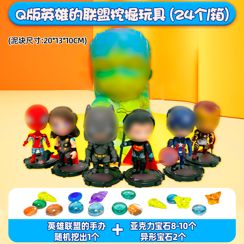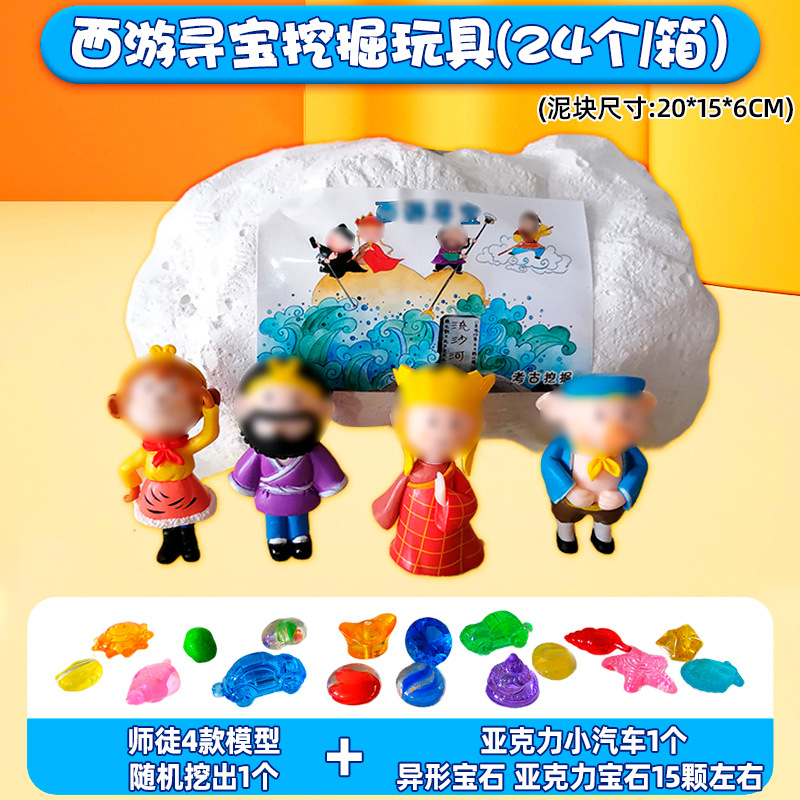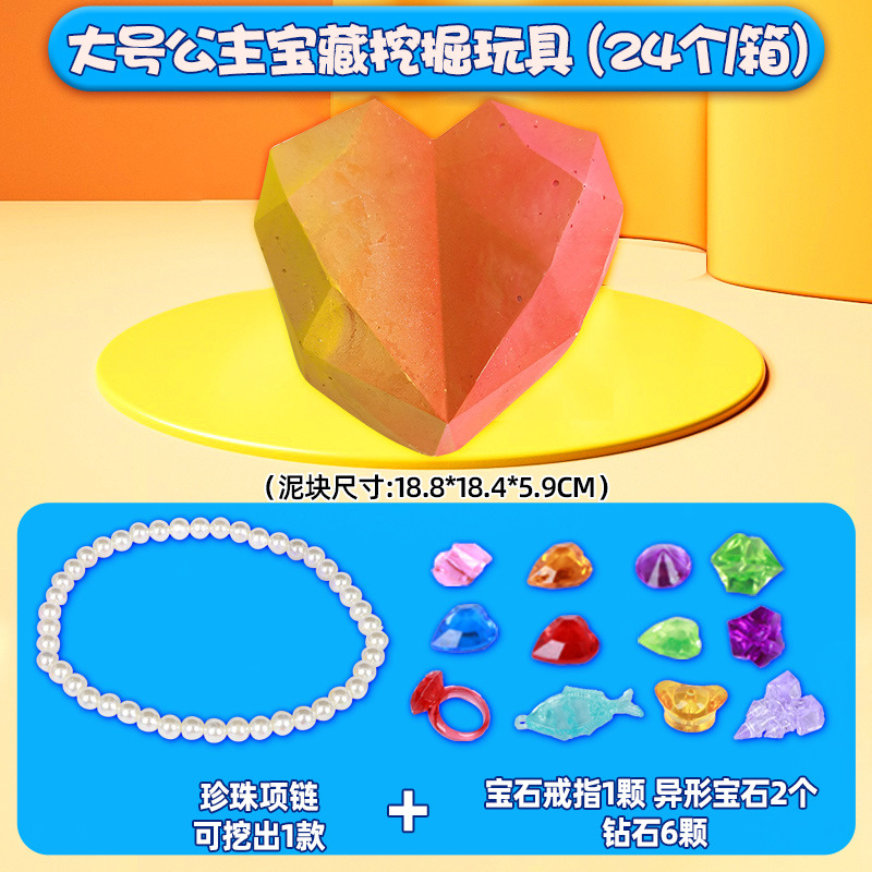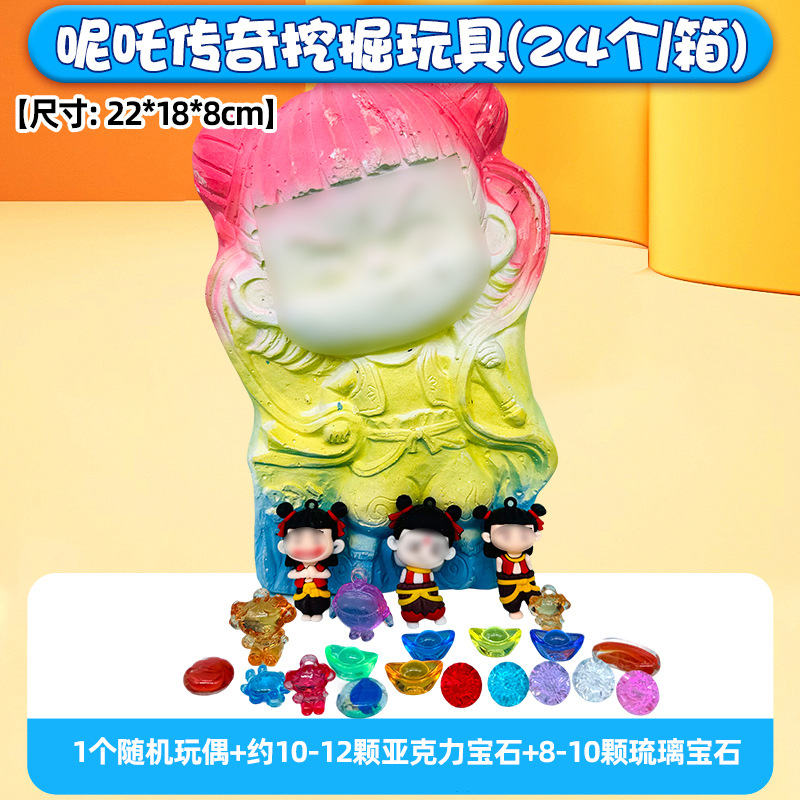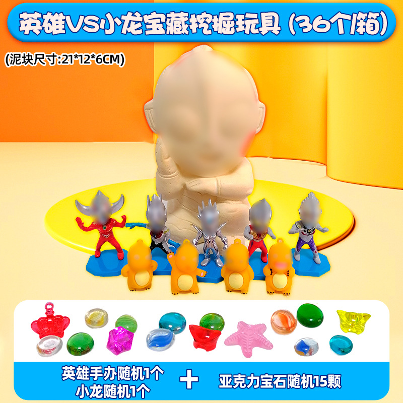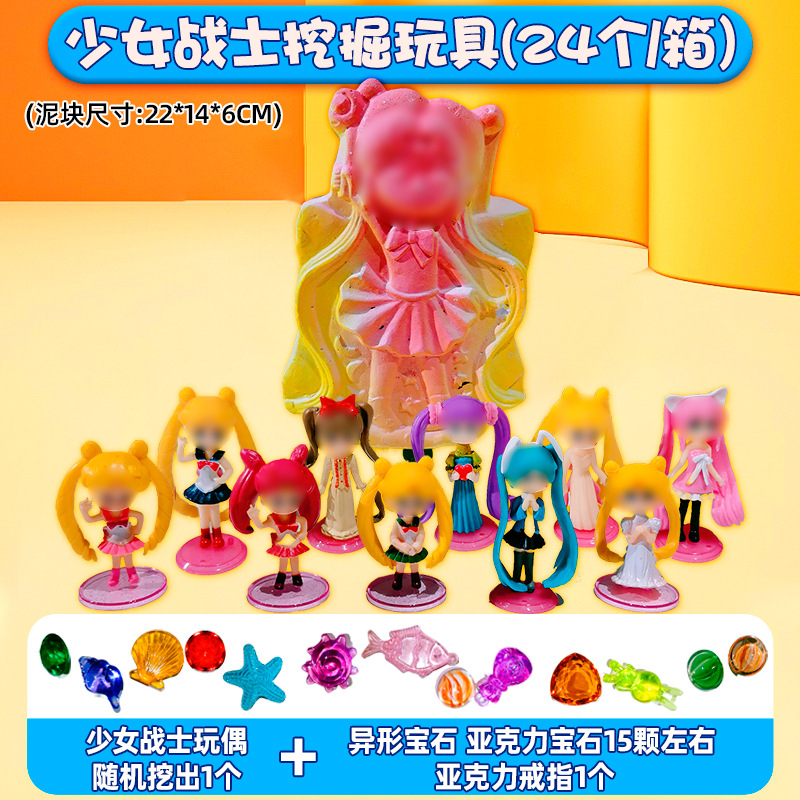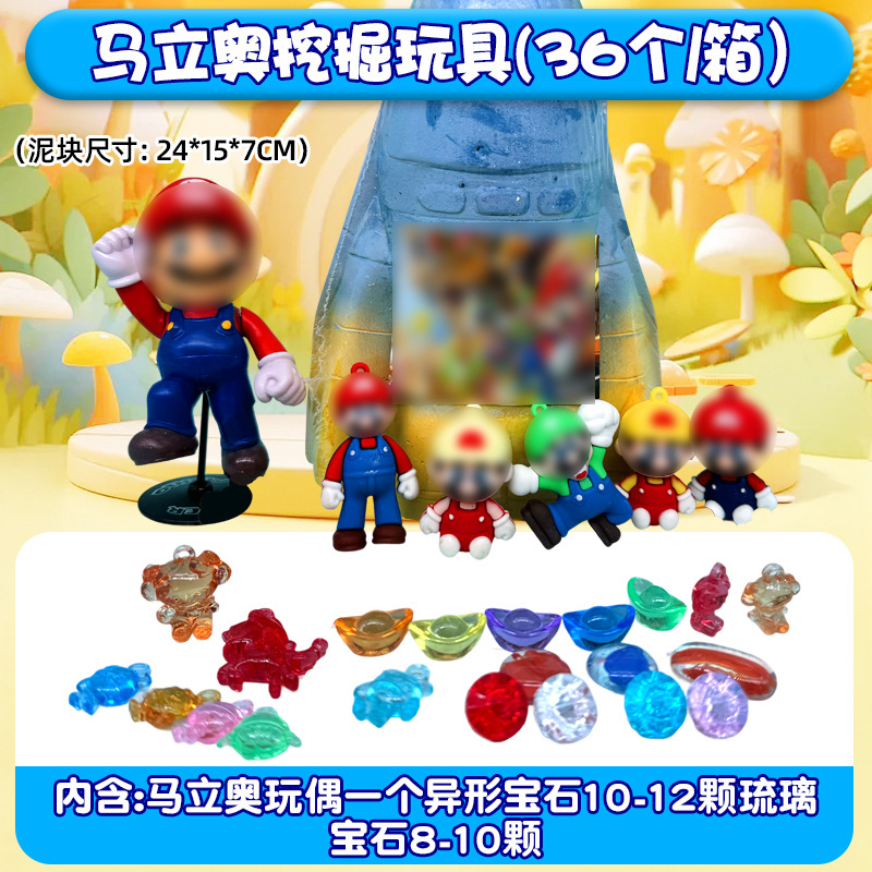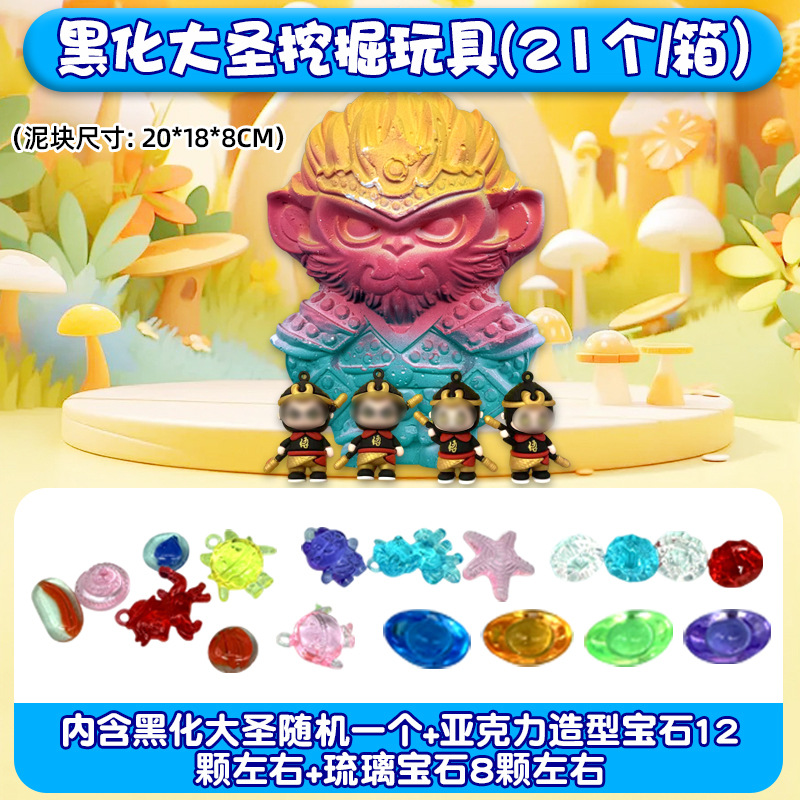 Набор инструментов из трех предметов (молоток + отвертка + щетка); Маленький динозавр (1 случайно собранный динозавр); Маленькая бронза (1 случайная маленькая бронза); Маленький размер — Воин из терракоты (1 случайный воин из терракоты); Маленький размер — серия драгоценных камней (случайным образом выкопайте 6 драгоценных камней); Большой размер — собранный динозавр (случайным образом выкопайте 1 собранный динозавр); Большой размер - светящийся динозавр в сборе (случайным образом выкопайте 1 светящегося динозавра в сборе); Большой размер - Xingdailu (1 случайная кукла + 1 акриловая корона, камень специальной формы + 15 стеклянных драгоценных камней/разноцветных драгоценных камней); Большой размер - игрушка-медведь-копатель (1 случайный медведь + 1 акриловый камень в форме короны + 15 стеклянных драгоценных камней/разноцветных драгоценных камней); Большой размер - Сокровище в лесу (1 случайная лесная кукла + 1 акриловое кольцо + стеклянные камни/камни иностранной формы, около 15 штук); Большой размер - большая коллекция драгоценных камней (глазурованные камни + орехи кешью + плоские бусины, всего 23 штуки); Большой размер - пляжное сокровище (большая колючая улитка + ракушка + раковина + разная улитка + 6-8 стеклянных бусин); Большой размер - Капибала (1 случайная кукла + около 10-12 акриловых камней + около 8-10 стеклянных камней); Большой размер — Марио (1 случайная кукла + около 10-12 драгоценных камней специальной формы + около 8-10 стеклянных драгоценных камней); Большой размер — Zero Nabell (1 случайная кукла + 2 драгоценных камня специальной формы + 10 акриловых драгоценных камней); Большой размер - Волшебный сменный браслет (1 случайный браслет + 1 кольцо + около 10 акриловых камней + около 8 стеклянных камней); Большой размер - пары черепах (1 случайная фигурка черепахи + 4 черепахи из искусственного хрусталя + около 15-20 акриловых бриллиантов/драгоценных камней специальной формы/стеклянных драгоценных камней); Большой размер — раскопки пони (1 кукла пони + 2 пони из искусственного хрусталя + 1 акриловое кольцо + 15–20 стеклянных драгоценных камней специальной формы + карточка пони); Большой размер — Гигантская панда (1 случайная кукла панды + около 12 акриловых драгоценных камней + около 8 стеклянных драгоценных камней); Большой размер — браслет для родителей и детей (случайным образом выкопайте большой и маленький градиентный браслет для родителей и детей); Большой размер - Ao Bing Legend (1 случайная кукла + 10-12 акриловых камней + 8-10 стеклянных камней); Большой размер - Come on Duck (1 случайная кукла из жареной утки + около 10-12 акриловых камней специальной формы + 8-10 стеклянных камней); Большой размер - Легенда о Неже (1 кукла случайного цвета + около 10-12 акриловых камней + 8-10 стеклянных камней); Большой размер — динозавр (1 случайный трехмерный динозавр из смолы); Большой размер — Куроме (1 случайная кукла Куроме + 1 кольцо + 15 акриловых и стеклянных камней); Большой размер — маленький спортивный автомобиль (2 случайные модели автомобилей + 2 акриловых автомобиля + 8 драгоценных камней специальной формы); Большой размер — раскопки сокровищ куклы Чиджи (1 случайный Чиджи + 1 случайное оружие + несколько акриловых драгоценных камней); Большой размер — Сокровище Маленького Медвежонка (2 куклы-медвежонки + акриловое кольцо + серия «Океан» + разноцветные драгоценные камни специальной формы + более 15 цветных