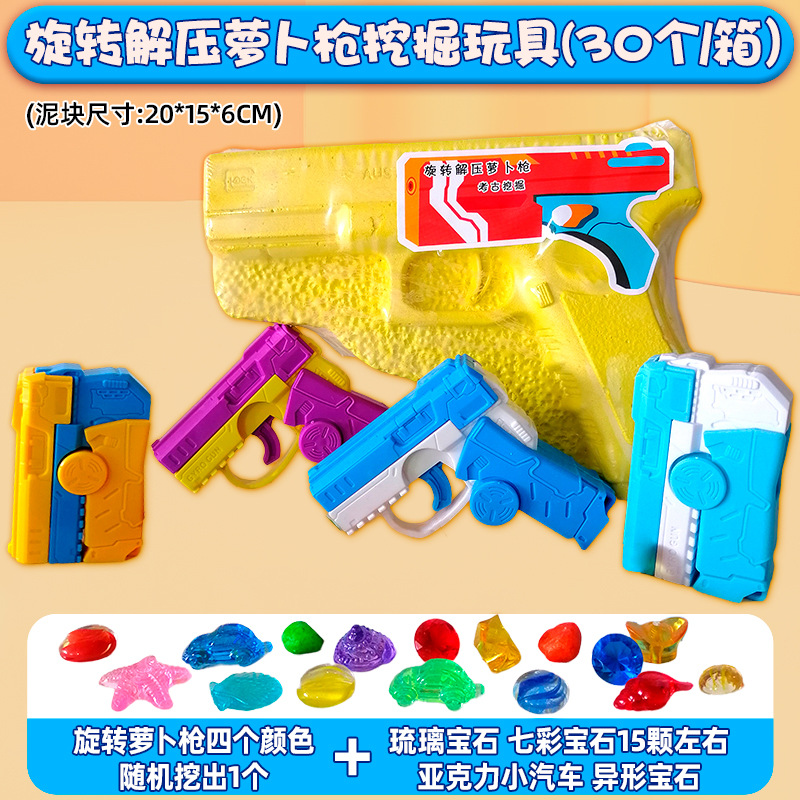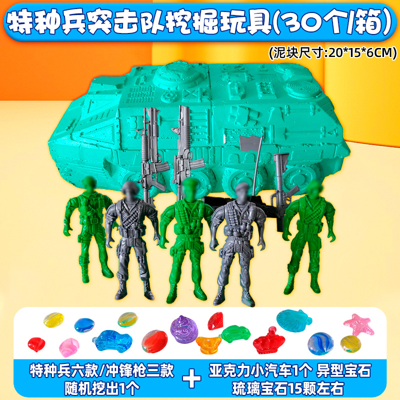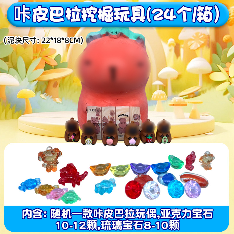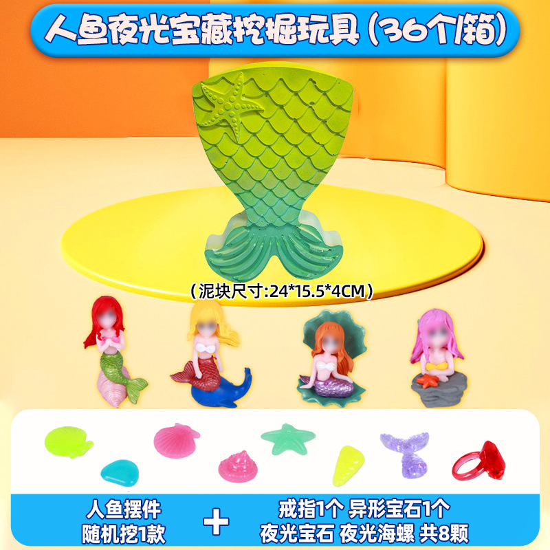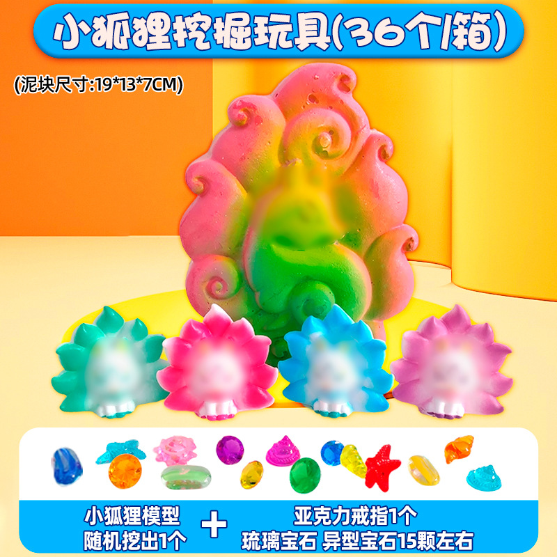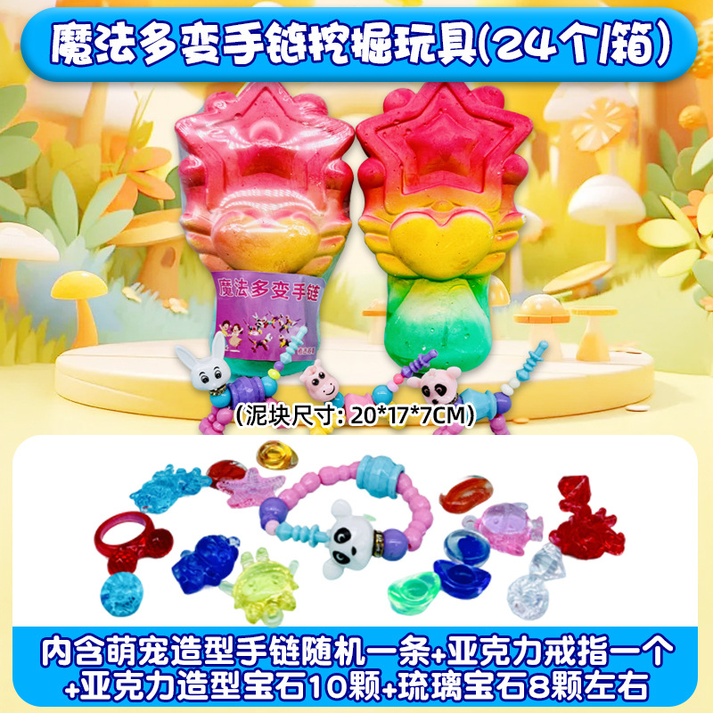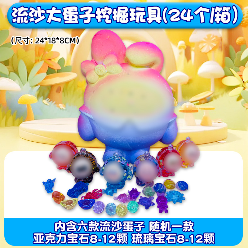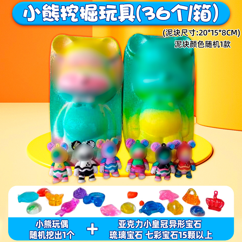 Набор инструментов из трех предметов (молоток + отвертка + щетка); Маленький динозавр (1 случайно собранный динозавр); Маленькая бронза (1 случайная маленькая бронза); Маленький размер — Воин из терракоты (1 случайный воин из терракоты); Маленький размер — серия драгоценных камней (случайным образом выкопайте 6 драгоценных камней); Большой размер — собранный динозавр (случайным образом выкопайте 1 собранный динозавр); Большой размер - светящийся динозавр в сборе (случайным образом выкопайте 1 светящегося динозавра в сборе); Большой размер - Xingdailu (1 случайная кукла + 1 акриловая корона, камень специальной формы + 15 стеклянных драгоценных камней/разноцветных драгоценных камней); Большой размер - игрушка-медведь-копатель (1 случайный медведь + 1 акриловый камень в форме короны + 15 стеклянных драгоценных камней/разноцветных драгоценных камней); Большой размер - Сокровище в лесу (1 случайная лесная кукла + 1 акриловое кольцо + стеклянные камни/камни иностранной формы, около 15 штук); Большой размер - большая коллекция драгоценных камней (глазурованные камни + орехи кешью + плоские бусины, всего 23 штуки); Большой размер - пляжное сокровище (большая колючая улитка + ракушка + раковина + разная улитка + 6-8 стеклянных бусин); Большой размер - Капибала (1 случайная кукла + около 10-12 акриловых камней + около 8-10 стеклянных камней); Большой размер — Марио (1 случайная кукла + около 10-12 драгоценных камней специальной формы + около 8-10 стеклянных драгоценных камней); Большой размер — Zero Nabell (1 случайная кукла + 2 драгоценных камня специальной формы + 10 акриловых драгоценных камней); Большой размер - Волшебный сменный браслет (1 случайный браслет + 1 кольцо + около 10 акриловых камней + около 8 стеклянных камней); Большой размер - пары черепах (1 случайная фигурка черепахи + 4 черепахи из искусственного хрусталя + около 15-20 акриловых бриллиантов/драгоценных камней специальной формы/стеклянных драгоценных камней); Большой размер — раскопки пони (1 кукла пони + 2 пони из искусственного хрусталя + 1 акриловое кольцо + 15–20 стеклянных драгоценных камней специальной формы + карточка пони); Большой размер — Гигантская панда (1 случайная кукла панды + около 12 акриловых драгоценных камней + около 8 стеклянных драгоценных камней); Большой размер — браслет для родителей и детей (случайным образом выкопайте большой и маленький градиентный браслет для родителей и детей); Большой размер - Ao Bing Legend (1 случайная кукла + 10-12 акриловых камней + 8-10 стеклянных камней); Большой размер - Come on Duck (1 случайная кукла из жареной утки + около 10-12 акриловых камней специальной формы + 8-10 стеклянных камней); Большой размер - Легенда о Неже (1 кукла случайного цвета + около 10-12 акриловых камней + 8-10 стеклянных камней); Большой размер — динозавр (1 случайный трехмерный динозавр из смолы); Большой размер — Куроме (1 случайная кукла Куроме + 1 кольцо + 15 акриловых и стеклянных камней); Большой размер — маленький спортивный автомобиль (2 случайные модели автомобилей + 2 акриловых автомобиля + 8 драгоценных камней специальной формы); Большой размер — раскопки сокровищ куклы Чиджи (1 случайный Чиджи + 1 случайное оружие + несколько акриловых драгоценных камней); Большой размер — Сокровище Маленького Медвежонка (2 куклы-медвежонки + акриловое кольцо + серия «Океан» + разноцветные драгоценные камни специальной формы + более 15 цветных