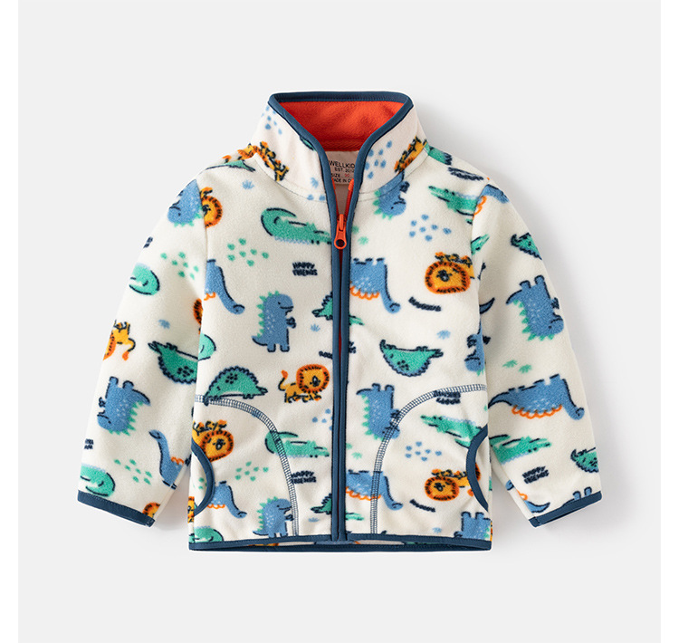 Детская флисовая куртка с принтом для мальчиков и девочек, теплый флисовый топ, осенне-зимняя одежда с кардиганом, воротником-стойкой, детская одежда.