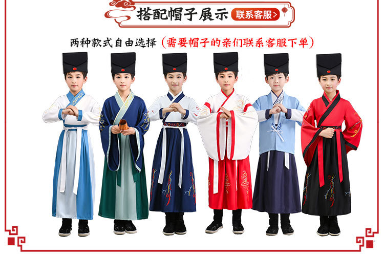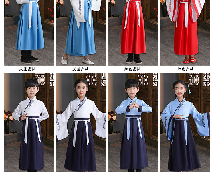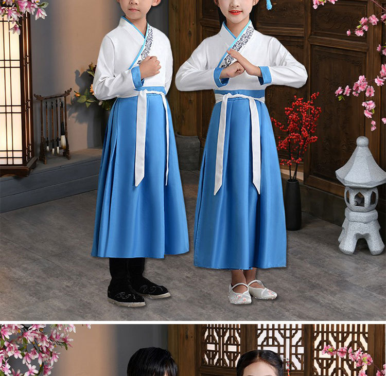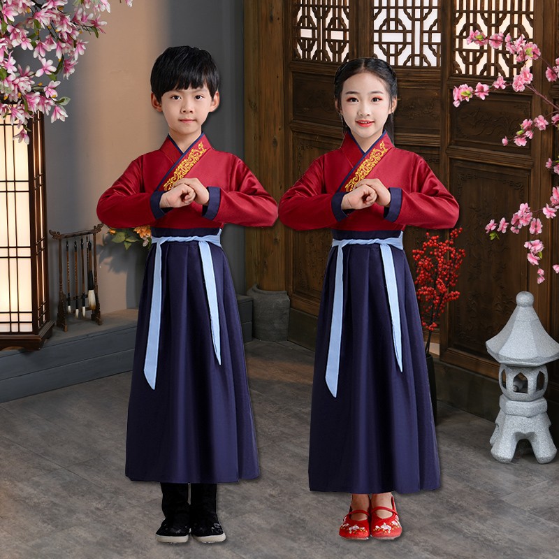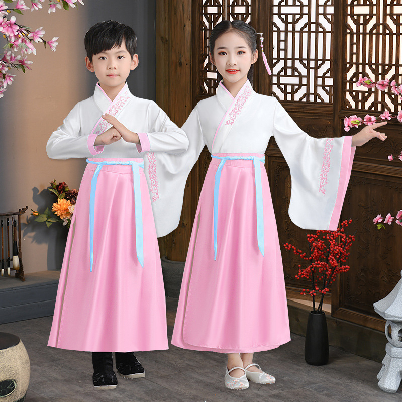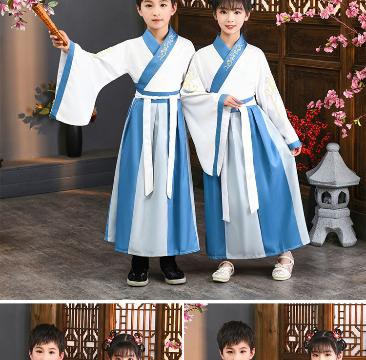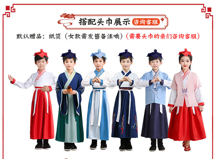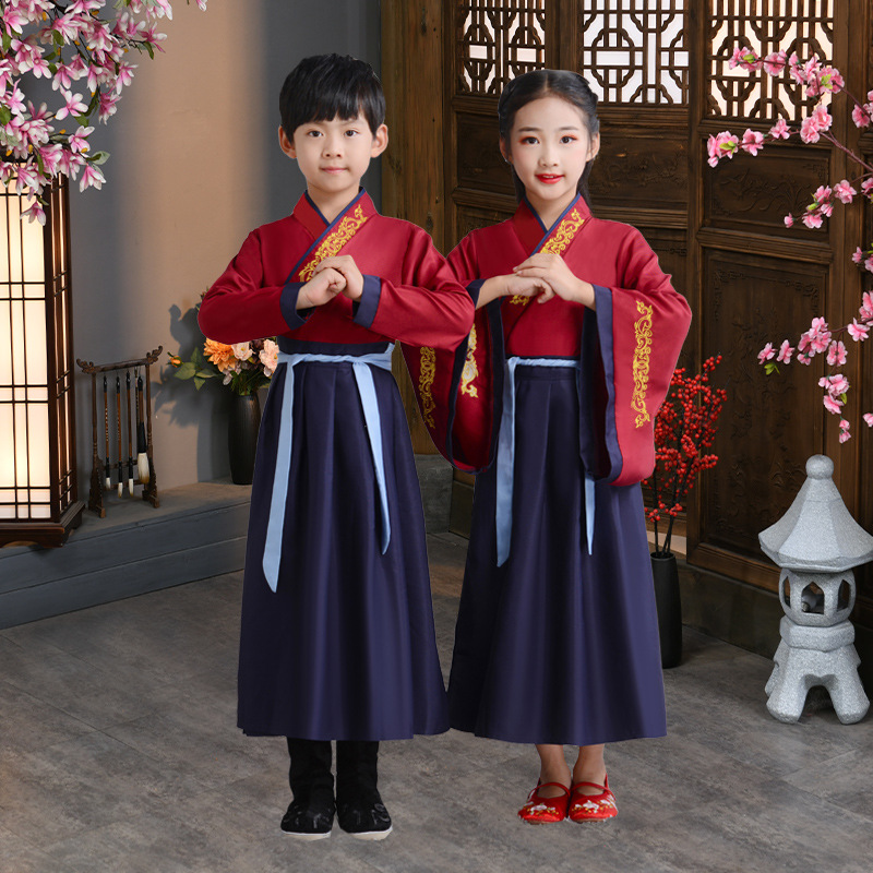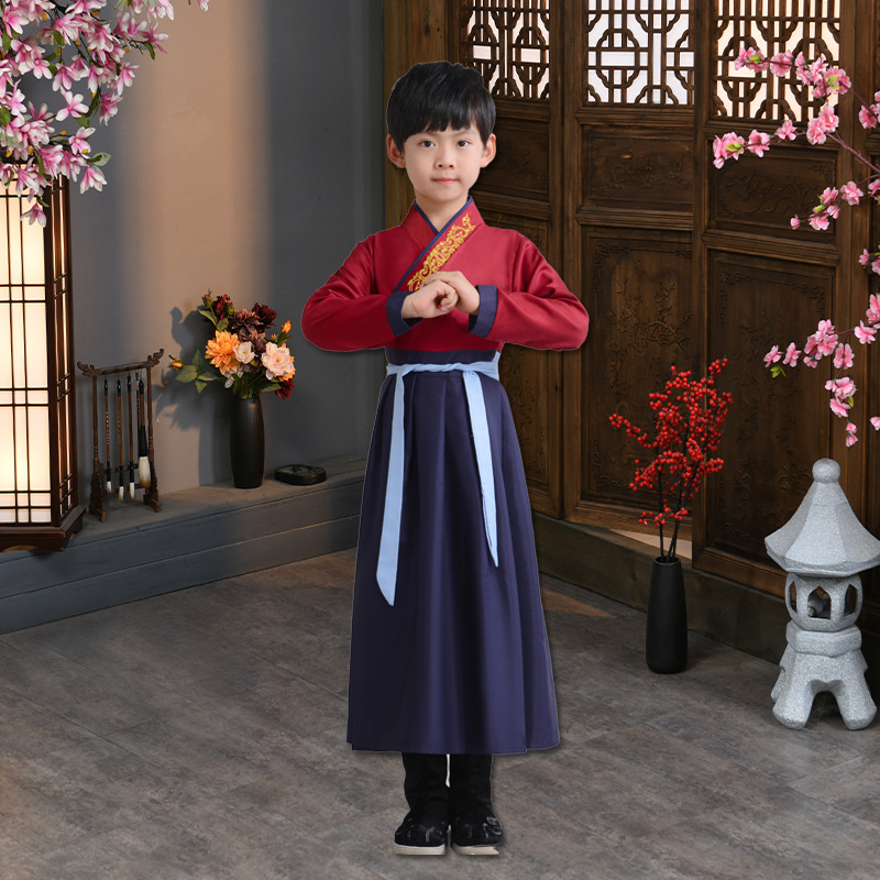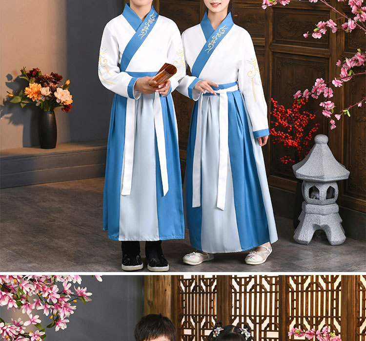 Детский китаеведческий ханьфу древний костюм для мальчиков, детей, девочек, трехсимвольных учеников сутр, костюмы для написания церемонии выступления