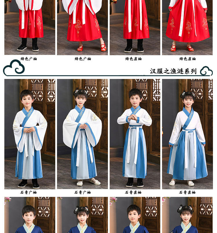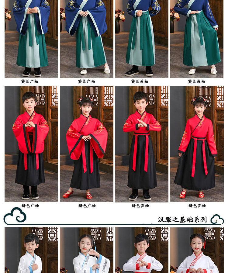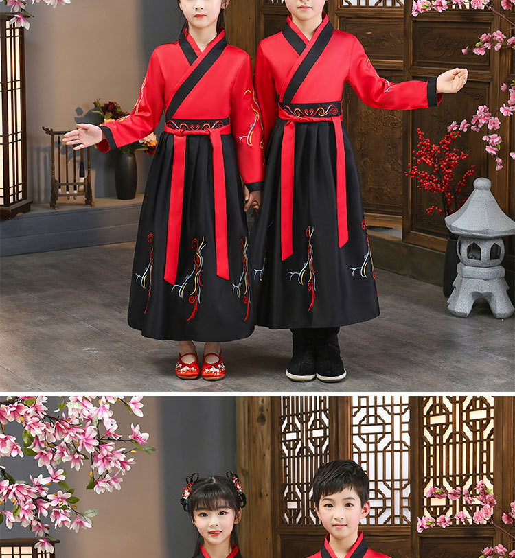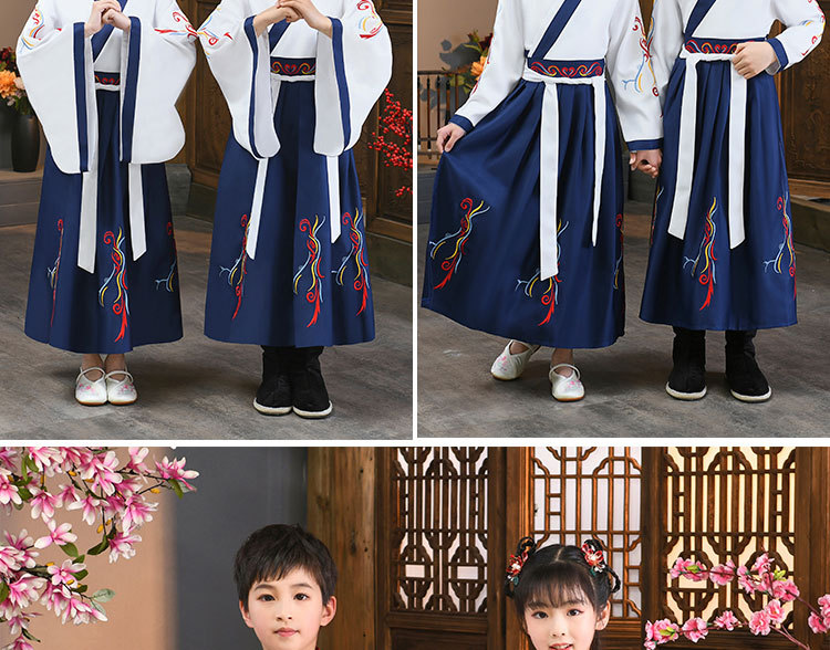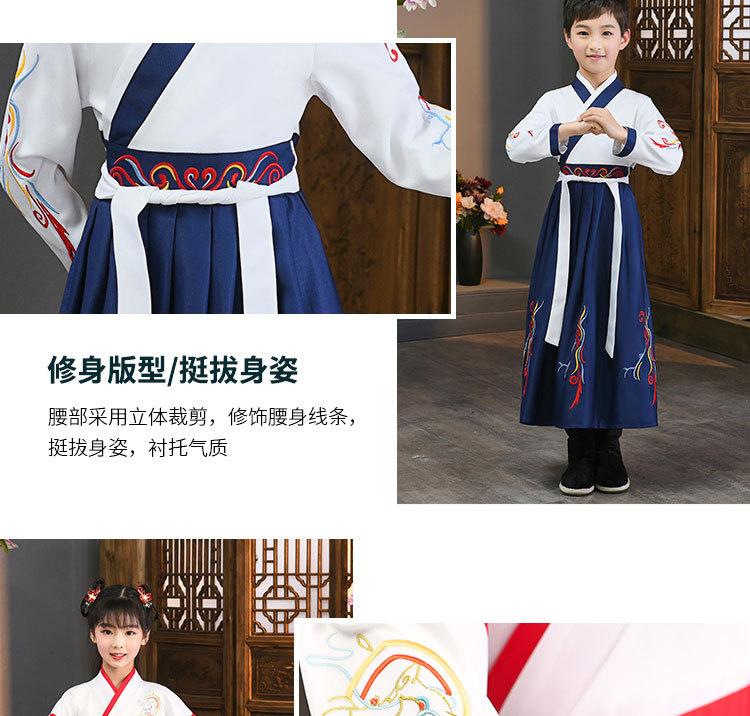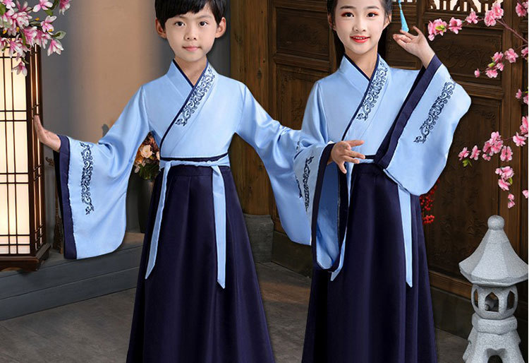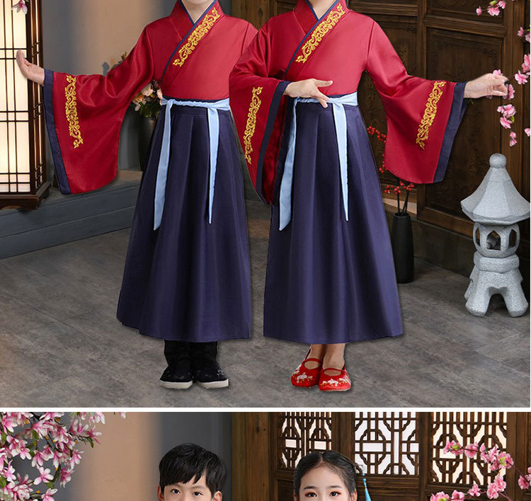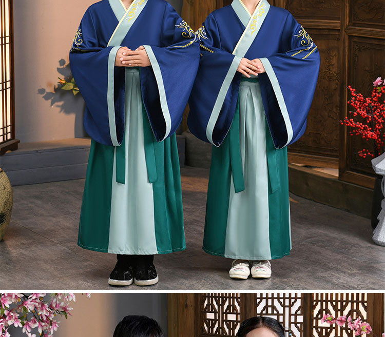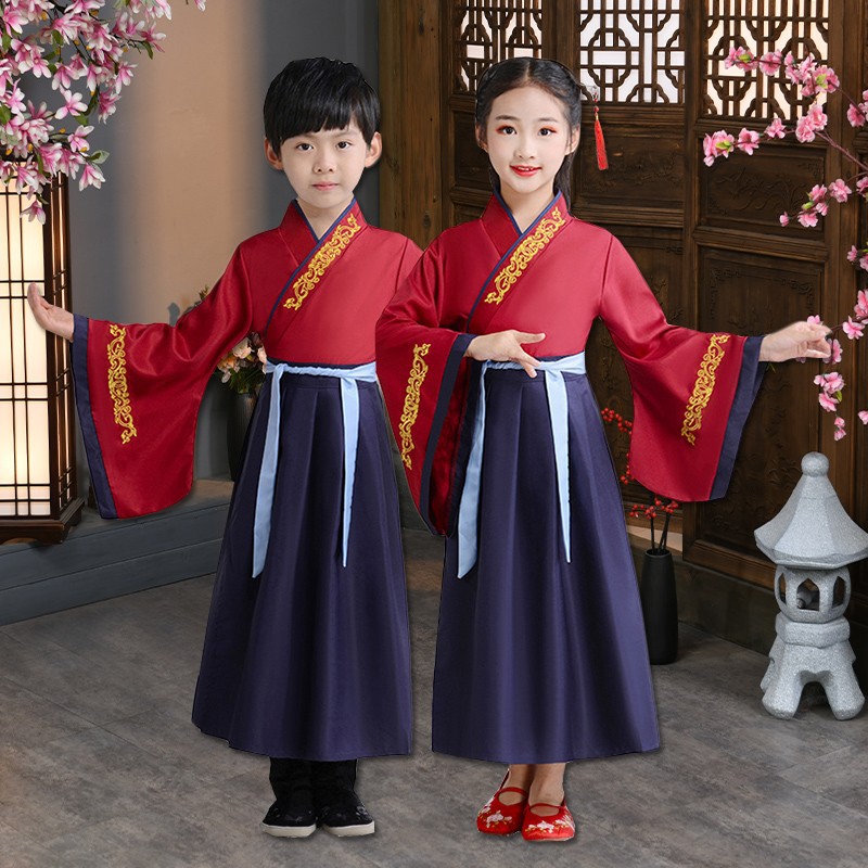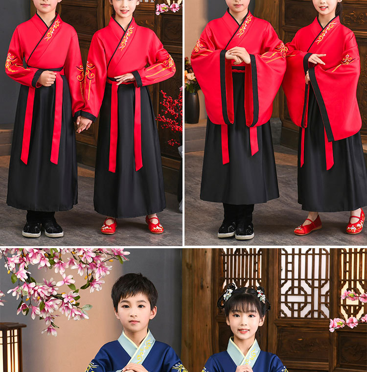 Детский китаеведческий ханьфу древний костюм для мальчиков, детей, девочек, трехсимвольных учеников сутр, костюмы для написания церемонии выступления