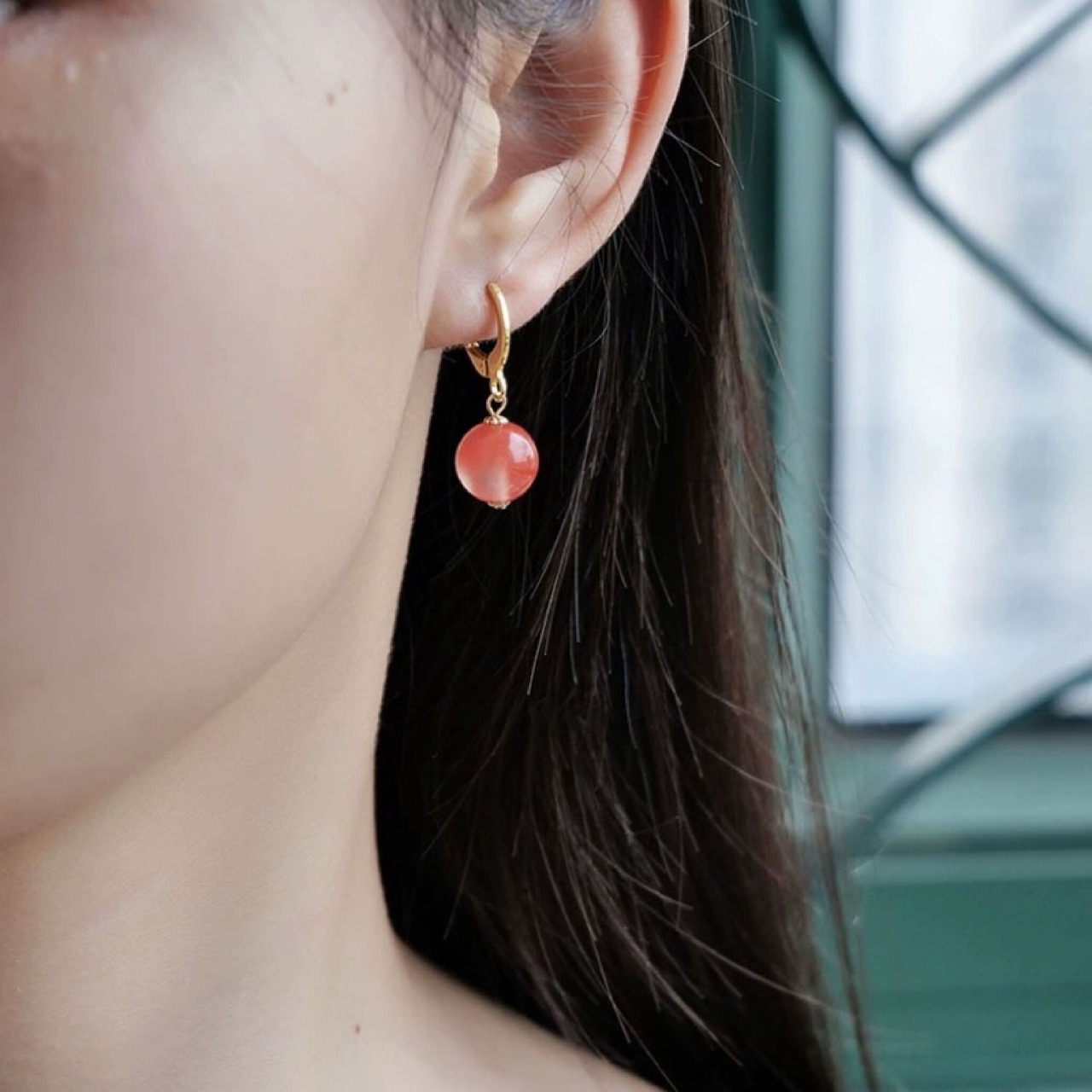 Натуральный Южный Красный Агат Серьги Темперамент Халцедон Нефрит Серьги Дочь Красный Cheongsam Серьги Пряжки Уха Серьги