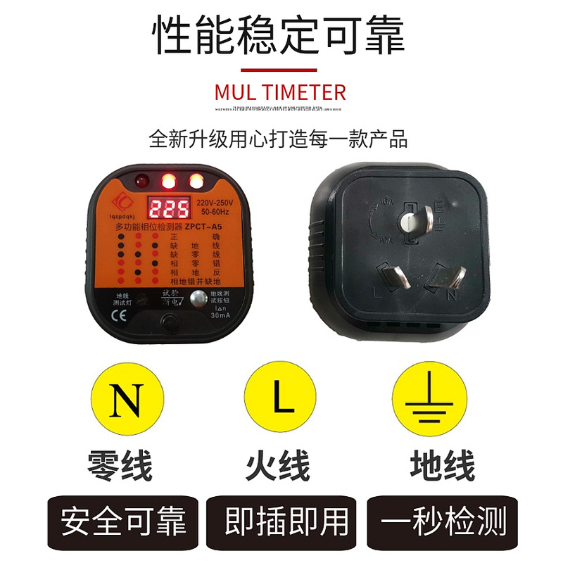 10А обычный; 16А Обычный; A1 Тип общего назначения (проверьте, находится ли заземляющий провод под напряжением); A2 общего типа (модель обнаружения утечки); A3 Многофункциональный (определение того, находится ли провод утечки/заземления под напряжением); A4 Многофункциональный (определение того, находится ли провод утечки/заземления под напряжением); Многофункциональный цифровой дисплей A5 (обнаружение утечки электричества/заземления); Многофункциональный жидкокристаллический дисплей A6