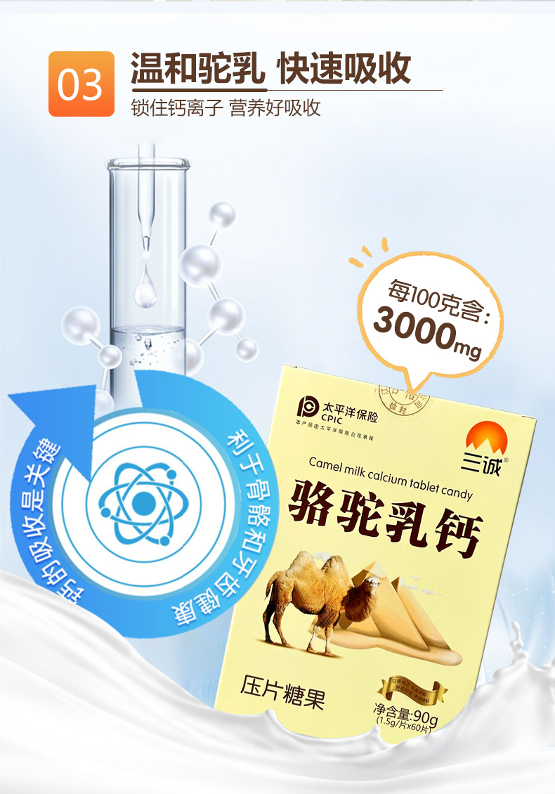 Таблетки кальция из верблюжьего молока марки Sancheng для детей, таблетки из цельного верблюжьего молока в форме конфет, 60 штук в упаковке, оптовая продажа от производителя, доступен дропшиппинг.