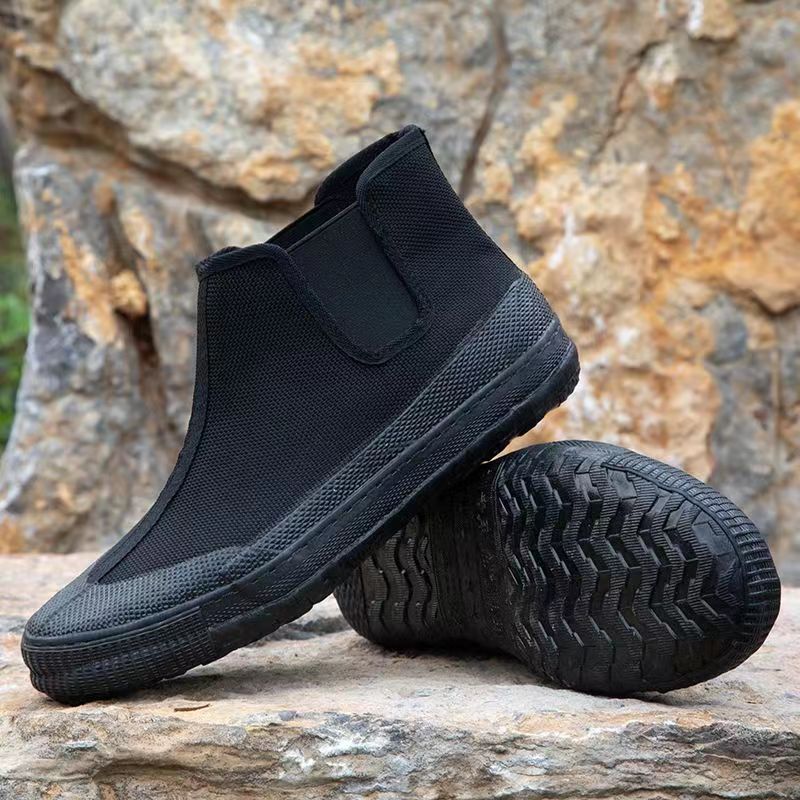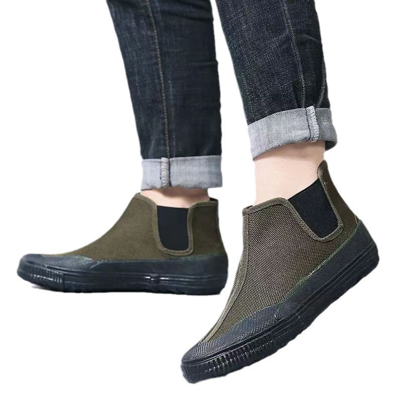 Камуфляжные рабочие ботинки на резиновой подошве для мужчин и женщин, низкие черные защитные ботинки для работы и обучения, желтые резиновые ботинки оптом, прямая поставка.