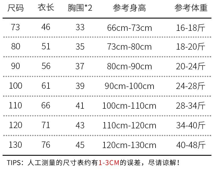 80 см (12-18 месяцев, вес 9,00-10,00 кг; 90 см (рост 80-90 см, вес 10,00-12,00 кг; 100 см (рост 90-100 см, вес 12,00-14,00 кг; 110 см (рост 100-110 см, вес 14,00-17,00 кг; 120 см (рост 110-120 см, Вес 17,00-20,00 кг; 130 см (рост 120-130 см, вес 20,00-24,00 кг; 73 см (6-12 месяцев вес 8,00-9,00 кг