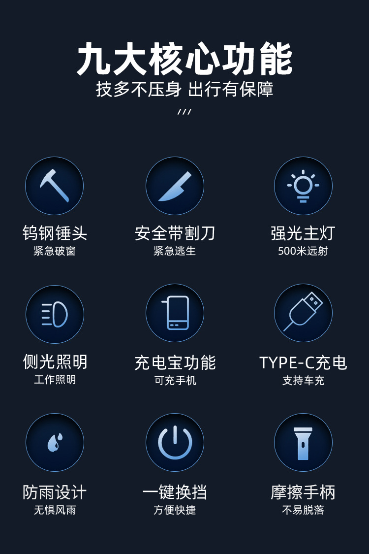 Открытый разбитое окно молоток Аварийный безопасный Мини Портативный быстрой зарядки мобильных мощность фонарик освещение фонарик Открытый Свет