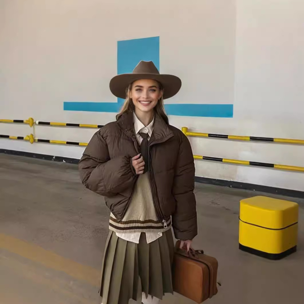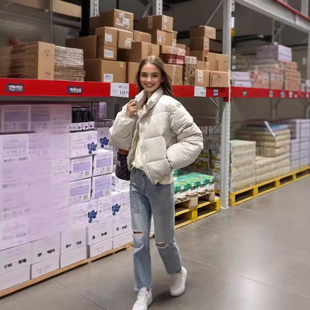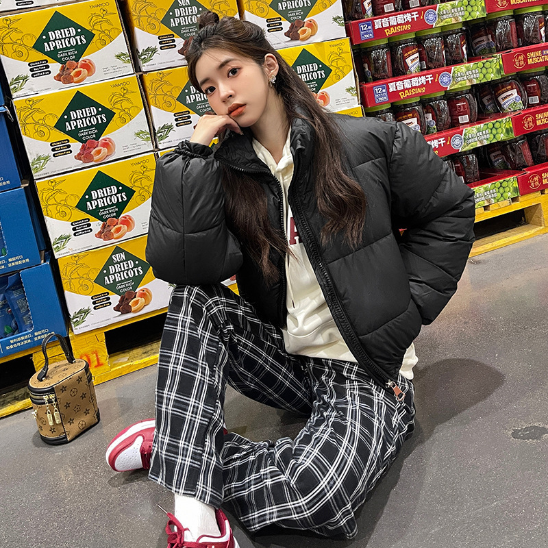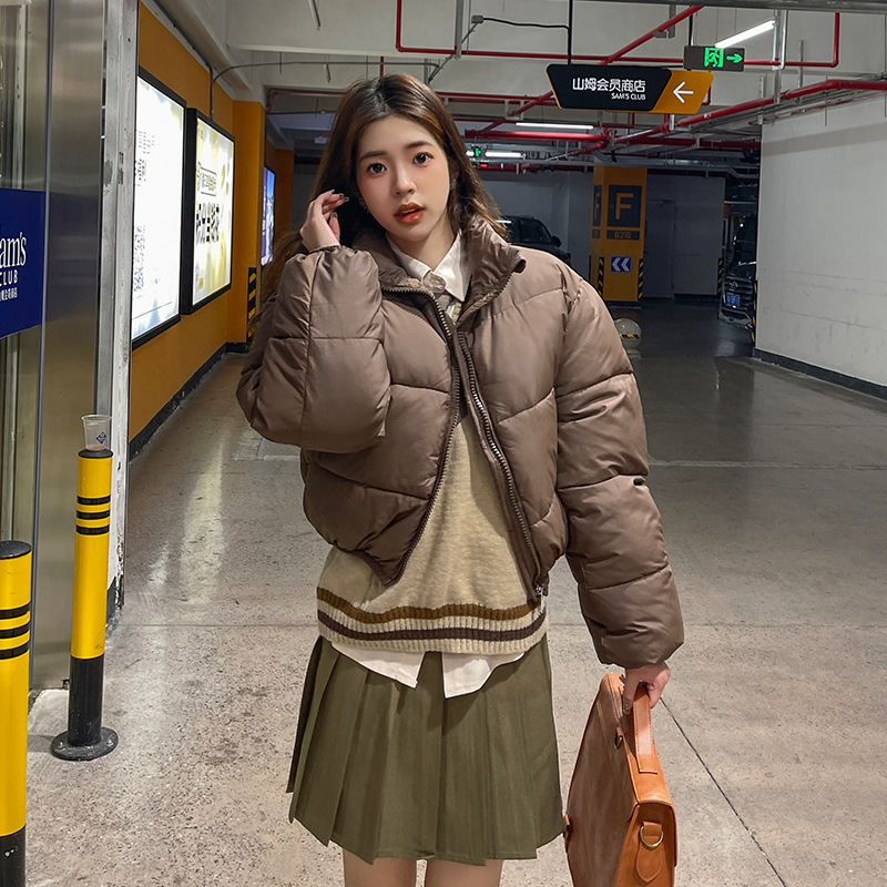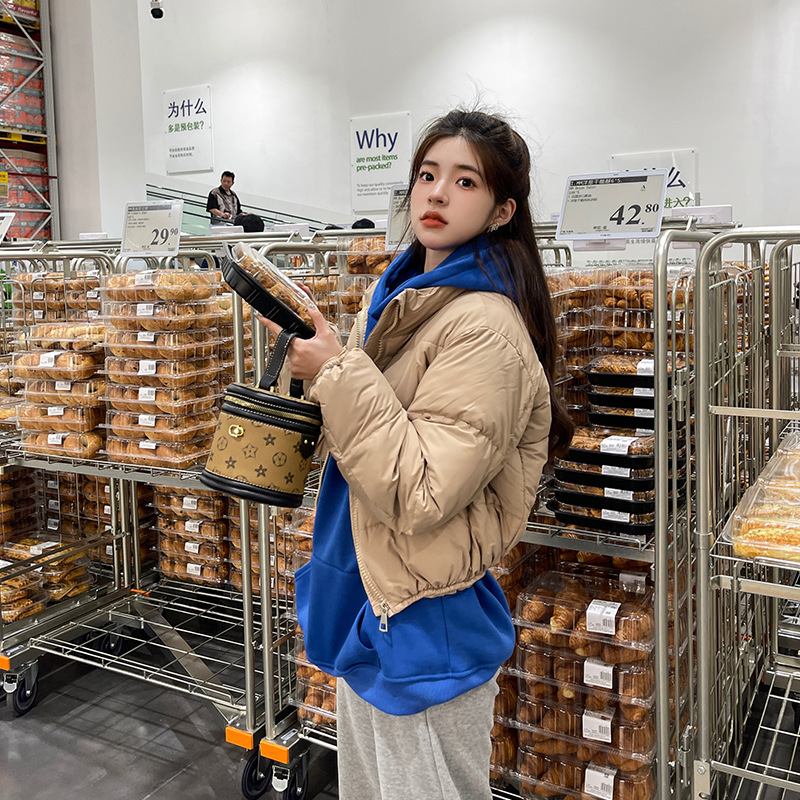 Пальто с хлопковой подкладкой женское короткое 2023 Зимняя Новая Европейская и американская маленькая пуховая куртка с воротником-стойкой, Женская Толстая куртка с хлопковой подкладкой, пальто прилив