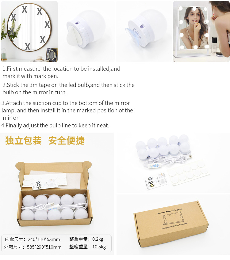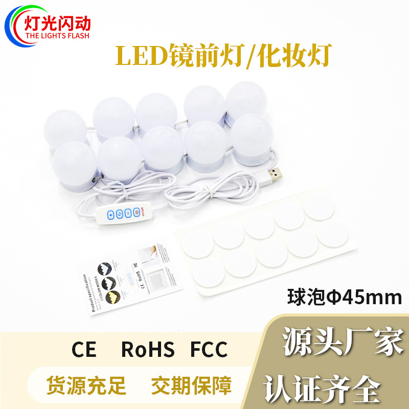 Новая голливудская роскошная зеркальная фара, четырехкнопочная, трехцветная, с затемнением, в помещении, заполняющий светильник, артефакт, 45 мм, пузырчатый корпус, светильник для макияжа