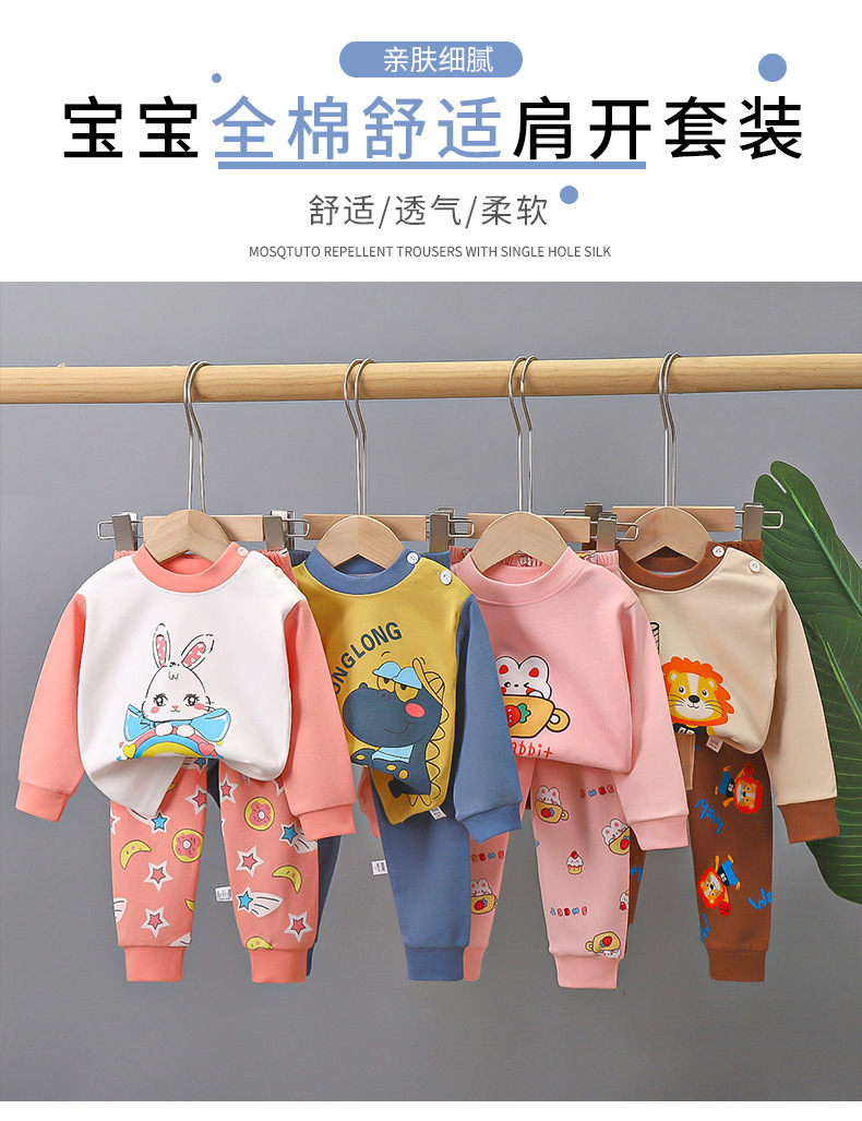 Детский осенний комплект термобелья из хлопка для младенцев и малышей, с мультяшным дизайном для девочек и мальчиков.