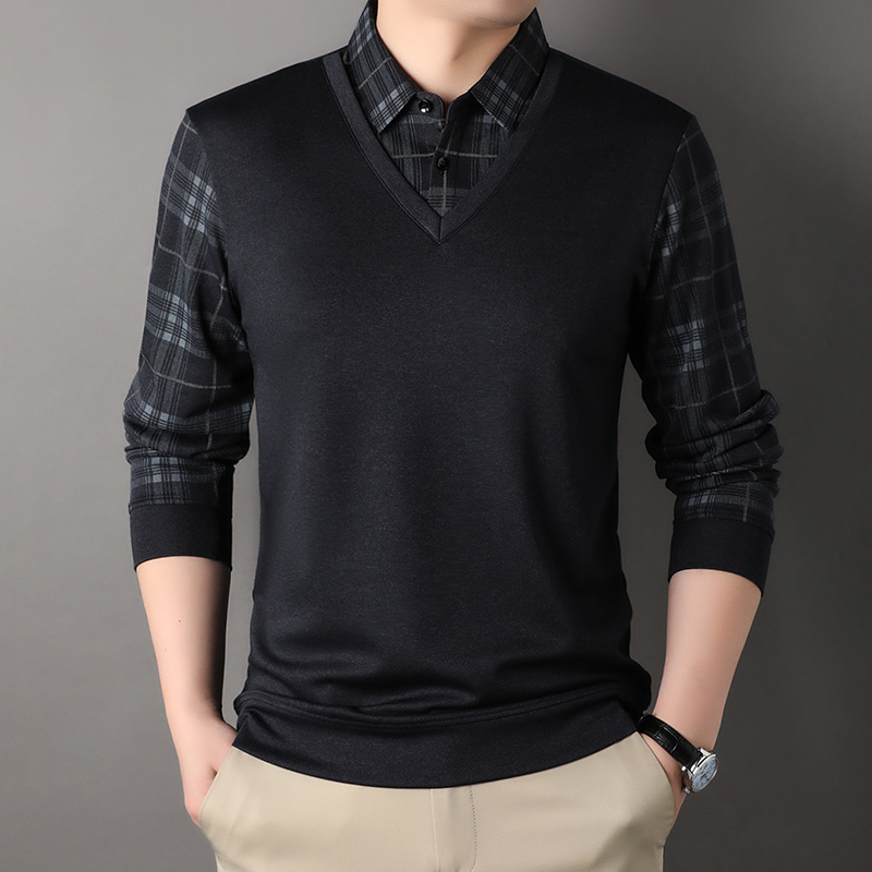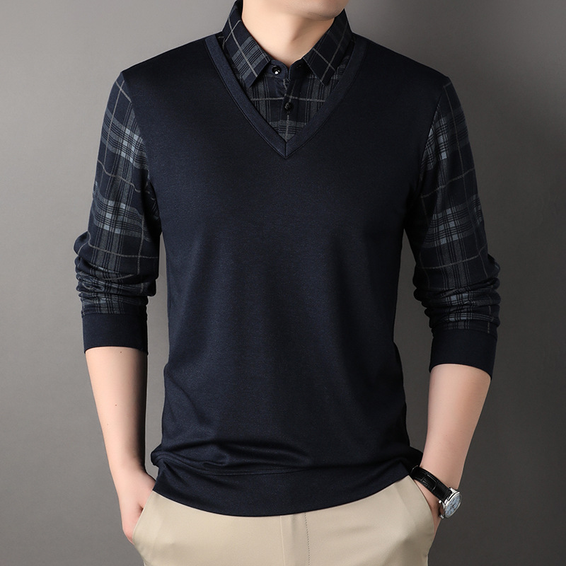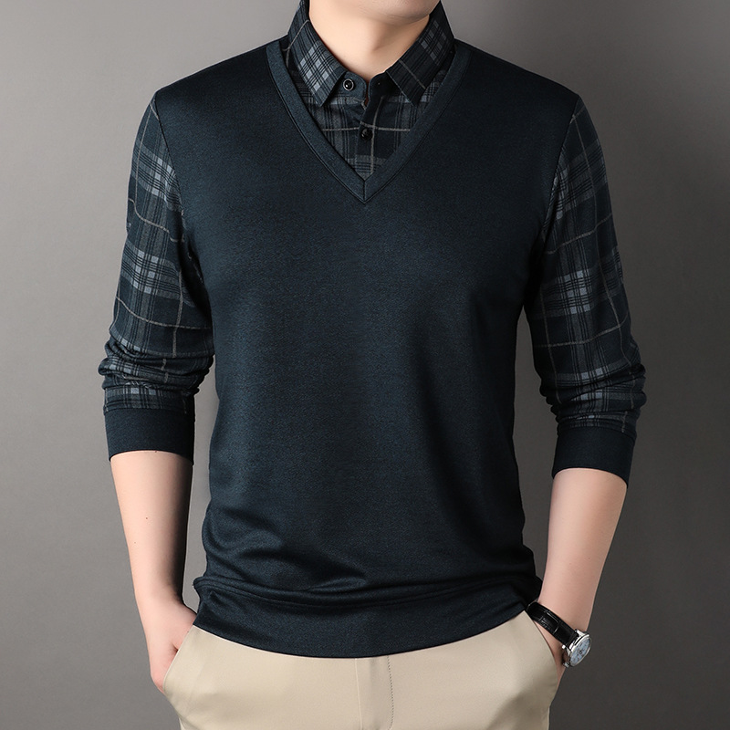 Весенне-осенняя футболка для папы с длинными рукавами, повседневный пуловер для мужчин среднего и пожилого возраста, Базовая рубашка, Осенний топ из двух искусственных предметов