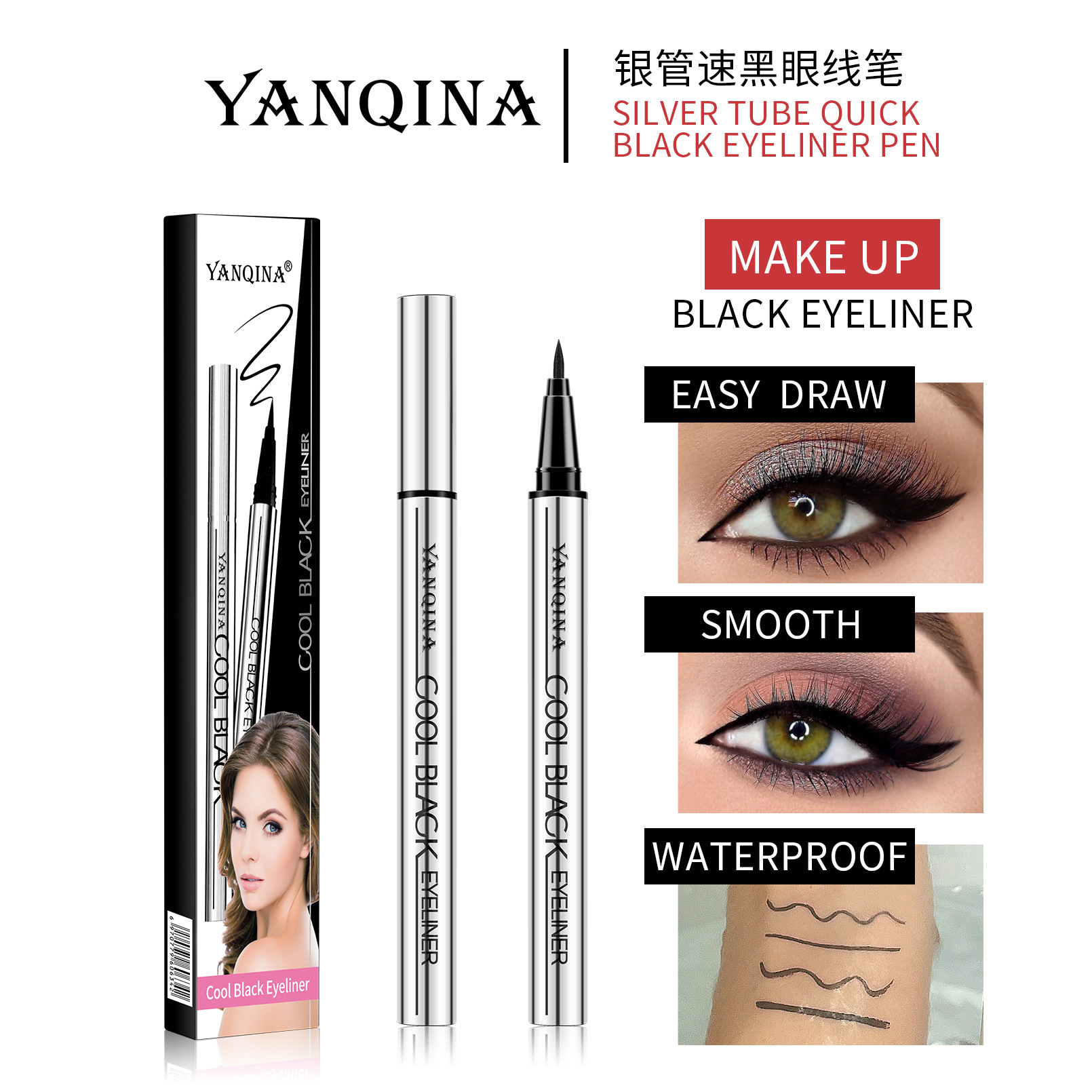 Классная черная ручка для подводки глаз YANQINA