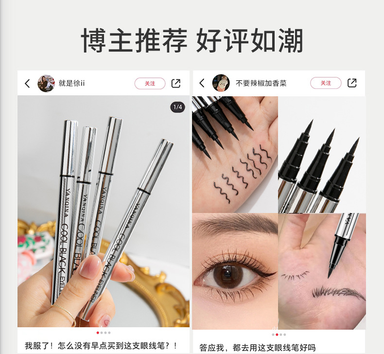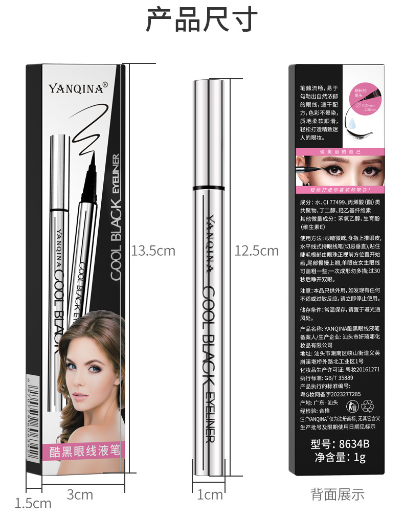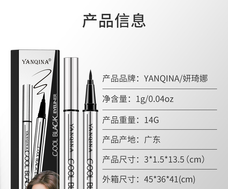 YANQINA крутая Черная Подводка для глаз, не Цветущая водостойкая против пота, долговечная быстросохнущая подводка для глаз из шелкопряда для внешней торговли